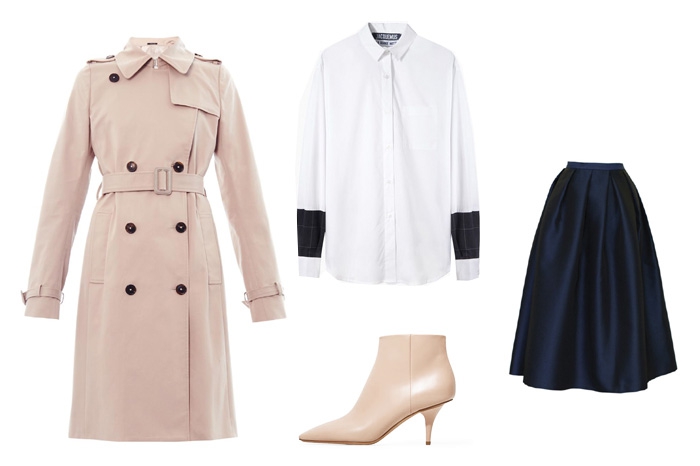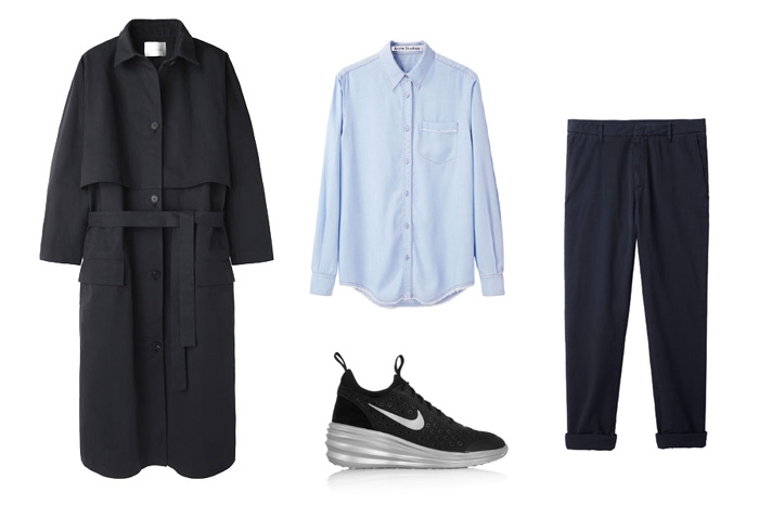 Самый легкий способ облагородить весенний лук — накинуть тренчкот. Будучи изначально верхней одеждой для мужчин, придуманной в начале двадцатого века как альтернатива тяжеловесной шинели, тренчкот перекочевал в женский гардероб в середине века, и сейчас их выпускает чуть ли не каждая вторая марка: Maison Martin Margiela, Michael Kors, A. P. C., Carven, Stella McCartney или Valentino.