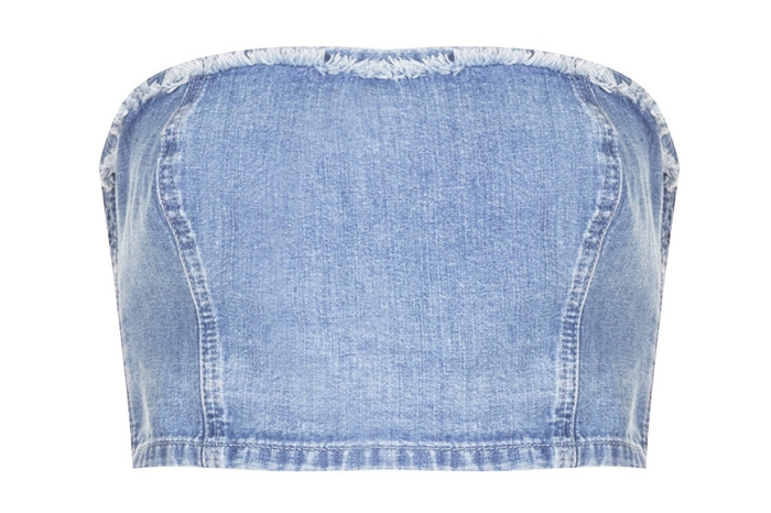 Излюбленный топ Кейт Мосс — джинсовое бандо из девяностых. Чтобы носить такой, неплохо бы обзавестись подтянутым верхним и нижним прессом. Еще одно полезное качество, необходимое для луков с короткими майками, — любовь к чрезмерному вниманию окружающих. Если вы не из таких, советуем накинуть спортивный топ жакет или женственный бомбер.