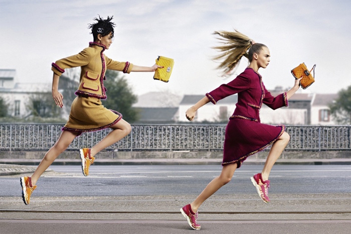 В недавно обнародованной рекламной кампании Chanel модели отжимаются, выполняют жим гантелей лежа, позируют на боксерском ринге, а после выходят на вечернюю пробежку в новых кроссовках — спорт задел даже непоколебимый люксовый статус французского модного дома. В прошлом сезоне Лагерфельд выпустил на кутюрное шоу моделей на подиум в кроссовках (которые, кстати, так и остались объектом вожделения, потому что продавались только в наборе с платьем стоимостью около миллиона рублей), а в этом — удивил публику велосипедками, которые гармонично вписались в комплект с твидовым костюмом. Окончательное доказательство того, что в моде теперь главенствует спортивная культура.