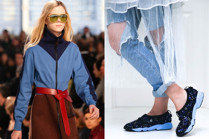 Оживление спортивного шика в наступающем сезоне внесли еще одни традиционные игроки рынка Louis Vuitton и Dior. Николя Гескьер в своей первой коллекции для французского модного дома доказал, что в свет можно вывести даже любимую трикотажную олимпийку — правда с одним условием: только «под руку» с хай-тек юбкой из замши. А Раф Симонс создал it-обувь, «идущую» в ногу с временем: за кроссовками с крошечными бантиками, цветочками и пайетками и грубой урбанистической подошвой уже выстроился wait-лист.