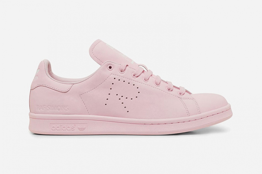 Раф Симонс не раз сотрудничал со спортивными брендами — выпускал коллекции с Asics, Fred Perry, рюкзаки Eastpak. Но плотнее всего дизайнер дружит с Adidas — c 2013 года два раза в год бельгиец придумывает для них линейку футуристичной обуви. В новом сезоне, правда, она скудно ограничилась четырьмя парами теннисных кроссовок Stan Smith в красном, сером, нежно-розовом и голубом цветах с буквой «R» на том месте, где должны быть три полоски. Традиционно Симонс занимается только мужской линейкой, но в этот раз расширил диапазон размеров — с 38 по 46. Некоторые модели уже можно купить онлайн, приблизительная цена — 400 долларов.