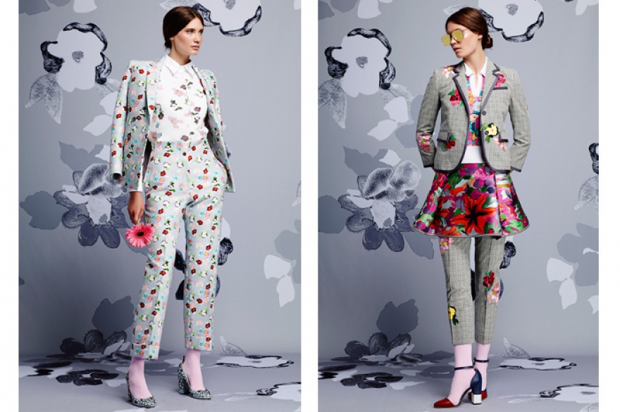 Том Браун выводит формулу садовода-интеллектуала: цветочные аппликации распускаются на пальто в клетку, солнечные очки приобретают форму листьев, и даже фирменному серому цвету дизайнер изменяет с герберами, ромашками и домашними розами. (nevsky 152 concept store)