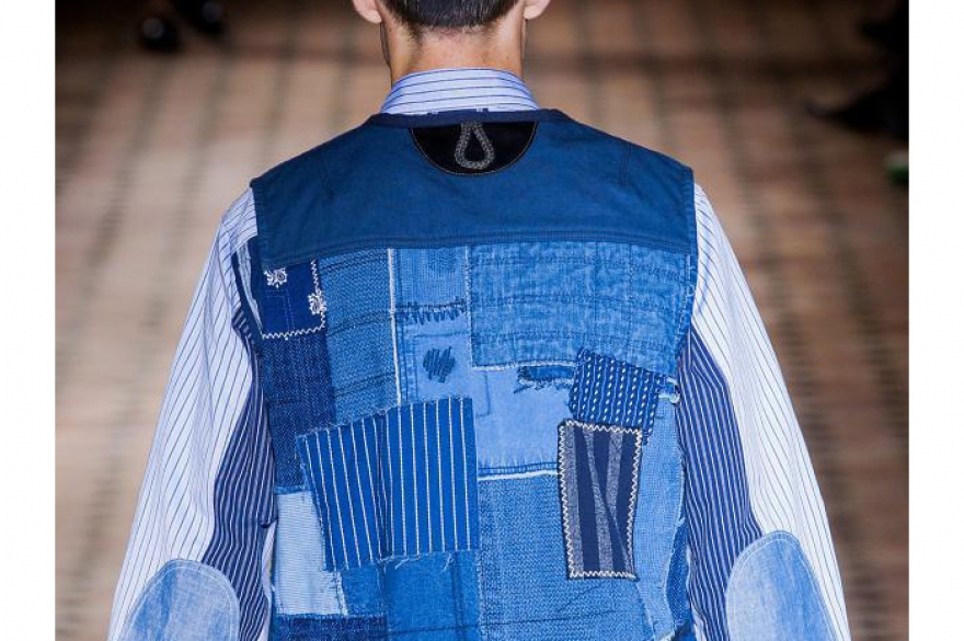 Жакеты, жилеты и джинсы весенней коллекции Джуния Ватанабе выполнил в боро — японской лоскутной технике XV века. Тогда пэчворк носили только крестьяне, а сегодня аппликации цвета индиго и комбинации денима с хлопком и атласом прочно держат баланс между авангардом и остроактуальной тенденцией к рукодельности. (Comme des Garcons)