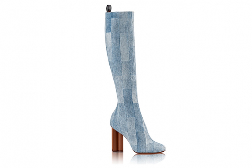Как облачиться в деним с ног до головы знают в Louis Vuitton. Начать стоит с летних ботильонов, собранных из денима в технике пэчворк.