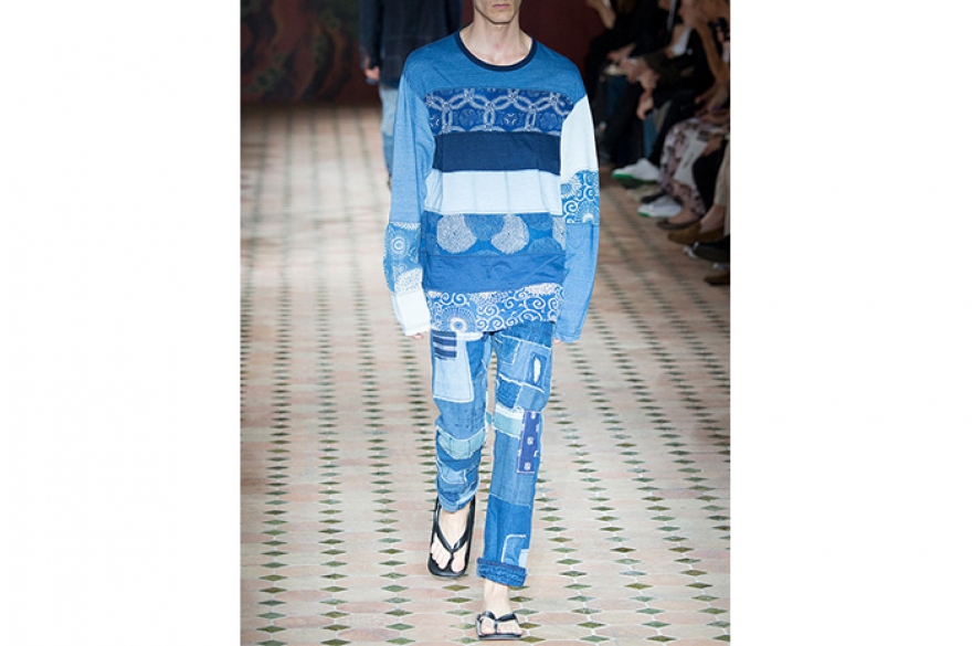 Жакетами, жилетами и джинсами из весенней коллекции Джунья Ватанабе воскресила «боро» — японскую лоскутную технику пятнадцатого века. Тогда пэчворк из тканей оттенка индиго носили только крестьяне — а сегодня джинсовые аппликации и комбинации денима с хлопком и атласом держат уверенный баланс между авангардом и сезонным маст-хэвом.