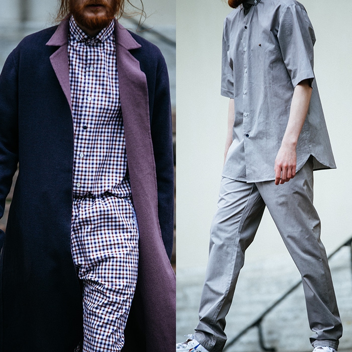 Весенняя коллекция марки Артема Шумова посвящена меланхоличному петербургскому бонвивану. Проснувшись глубоко за полдень, он отправляется на экспозицию в Главный штаб, благо пижамные двойки из плотного хлопка украшены каплями натурального жемчуга. А после особенно утомительного вернисажа можно запросто прилечь на свежеокрашенную скамью, ведь спина кашемирового пальто-халата заботливо раскрашена светодиодной краской. (JNBY)