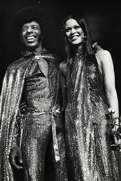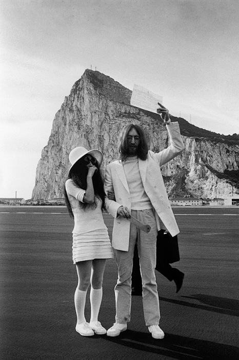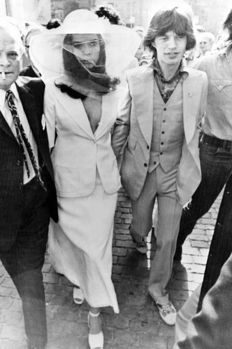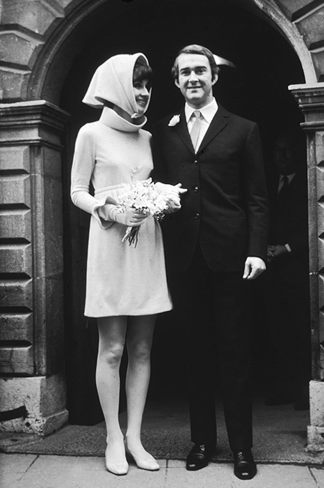 Свадебную шестидесятых следует изучать по решительным выходкам невест музыкантов. Йоко Оно променяла классический свадебный наряд на футболку, юбку, гольфы и шляпы (все белоснежное), а Джейн Фонда для свадьбы с Роже Вадимом выбрала короткое платье вкупе с сапогами из черной замши. Одри Хепберн выходила замуж в нежно-розовом коротком платье-водолазке, которое для актрисы сшил Юбер Живанши. Семидесятые в отношении свадебных нарядов были еще резче: группиз хотели походить на богемную Бьянку Джаггер, которая на церемонии бракосочетания с Миком Джаггером устроила практически сексуальную революцию, появившись в пиджаке Yves Saint Laurent на голое тело. Иконическим нарядом эпохи принято считать и переливающееся платье Кэти Силвы (невесты Слая Стоуна) в духе психоделического фанка.