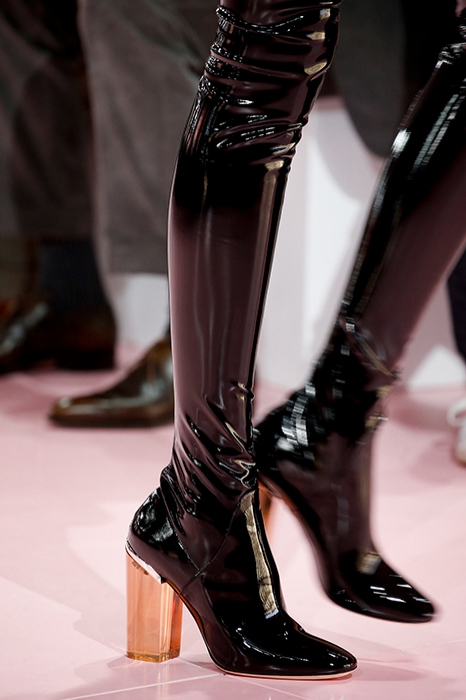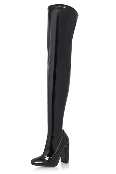 Еще среди находок недели — фетишистская юбка из кожаной сетки Altuzarra, которую повторили в своей коллекции Nastygal (внимание: в 50 раз дешевле) и виниловые ботфорты: подобные можно найти не только в британском масс-маркете, но и во всех секс-шопах страны.