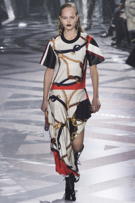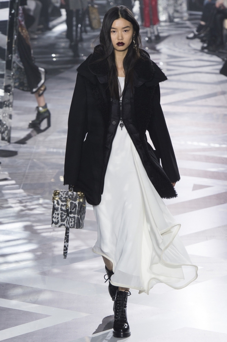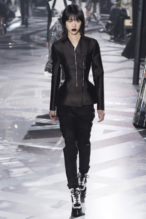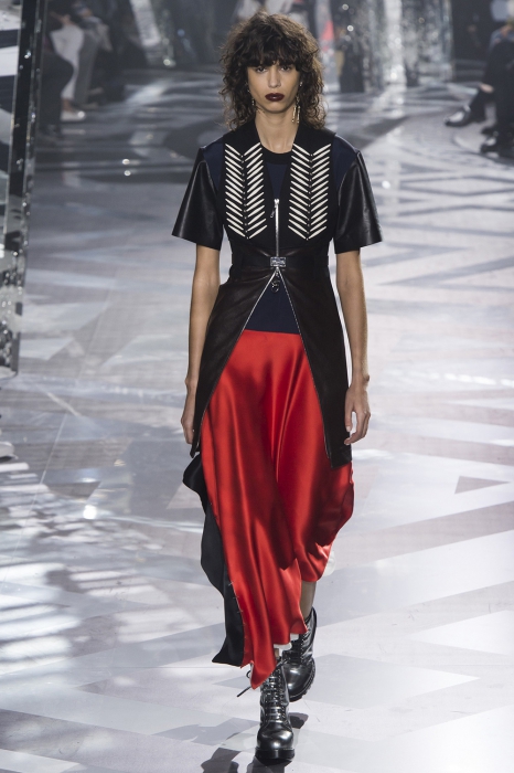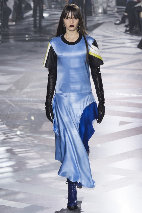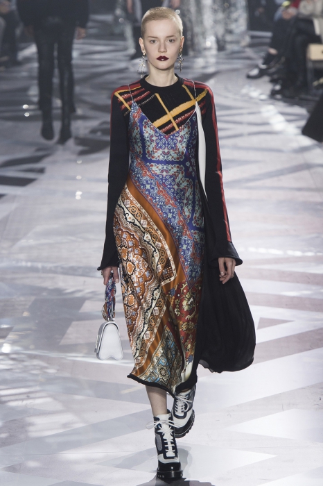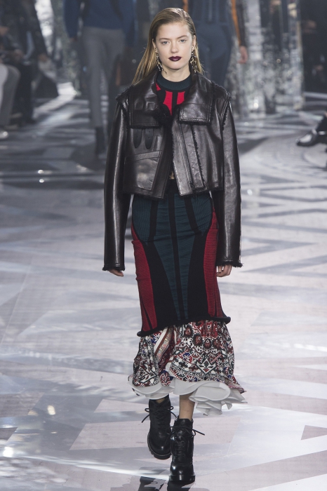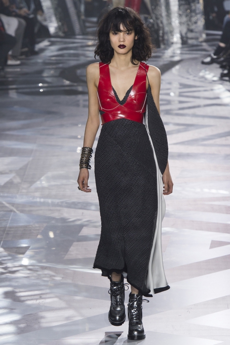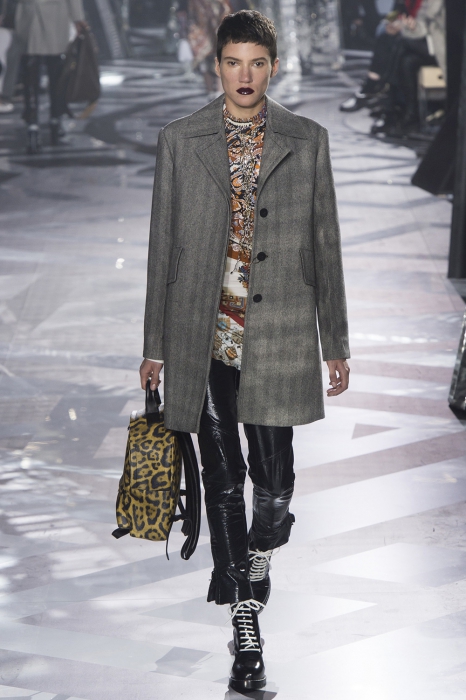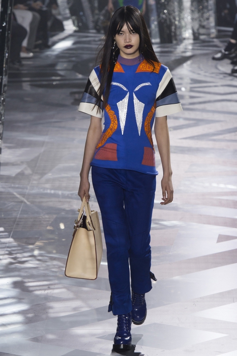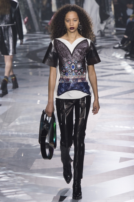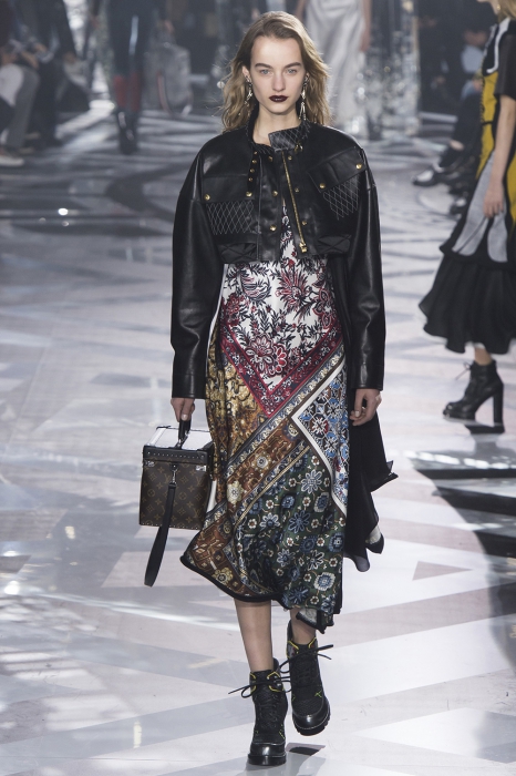 Пока остальные дизайнеры цитируют прошлое, креативный директор Louis Vuitton Николя Гескьер уверенно смотрит в будущее. В первом ряду его шоу — только ньюкамеры года: Алисия Викандер, Лея Сейду и Джейден Смит, сын Уиллоу Смита (15-летнюю дочь актера, Уиллоу, уже трудоустроили в Chanel). В коллекции — снова футуризм. Эффект будущего у Гескьера получатся создать даже с помощью традиционных шейных платков Louis Vuitton — из них дизайнер теперь делает платья. Что говорить про шелковые комбинации, снабженные кожаными лифами, футуристичные жилеты на молнии и десяток пар обуви и сумок, в которых можно наряжать героинь видеоигр.