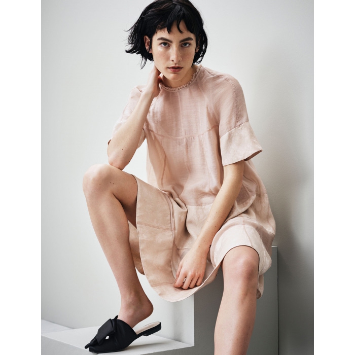 В парижском Музее декоративно-прикладного искусства готовится выставка «Fashion Forward: 300 лет моды», посвященная тридцатилетию его коллекции, где собраны уникальные объекты и ткани, некоторые из которых имеют трехвековой провенанс. Частью экспозиции стали вещи из эко-линии H&M, созданной по материалам из архива музея: бальное платье с глубоким декольте, свободные кафтаны и скульптурного кроя юбки выглядят так, будто их нарисовал Франсуа Буше наших дней. Художественную тему поддерживают принты с репликами полотен Боттичелли и Гюстава Моро, рисунки-обманки тромплей, создающие иллюзию трехмерного изображения. Историческое наследие дизайнеры подают исключительно натурально: все вещи выполнены из органических материалов — шелка, конопли и льна, а текстильной премьерой коллекции стал денимит — материал, созданный из переработанного денима. (H&M)