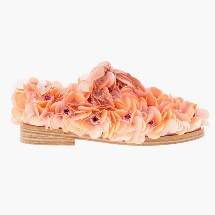Грузинский дизайнер Ануки Арешидзе, супруга министра энергетики Грузии и экс-футболиста Кахи Каладзе, выпустила импрессионистские сникеры для своего бренда Anouki. Кажется, что они расцветают перед выходом в свет, ведь собраны из крупных пудровых пайеток, имитирующих россыпь лепестков. («Большой»)