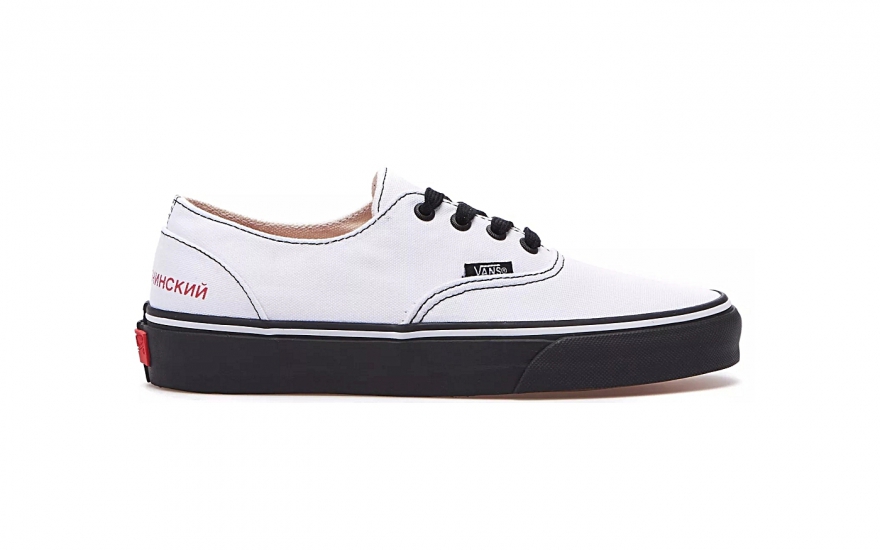Два месяца назад мы рассказывали о кроссовках Reebok x Gosha Rubchinskiy, а в июне в Петербург приехала вторая коллаборация московского дизайнера — на этот раз, с Vans. Классические модели кед с логотипом «Гоша Рубчинский» (кириллицей) в трех цветах (розовом, бирюзовом и белом) продаются на третьем этаже Au Pont Rouge в женских и мужских размерах. Цена — 11 200 рублей.