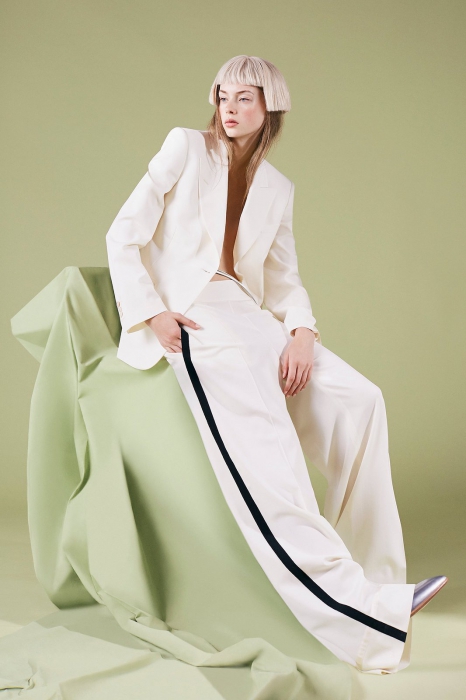 Прием с жакетом предложили консервативные бренды, противники рискованных сочетаний. Ralph Lauren делают спортивные брюки из пыльно-розовой замши и стилизуют его с пиджаком в тон. Пафоса можно добавить и укороченным жакетом — хороший пример показали Tory Burch.