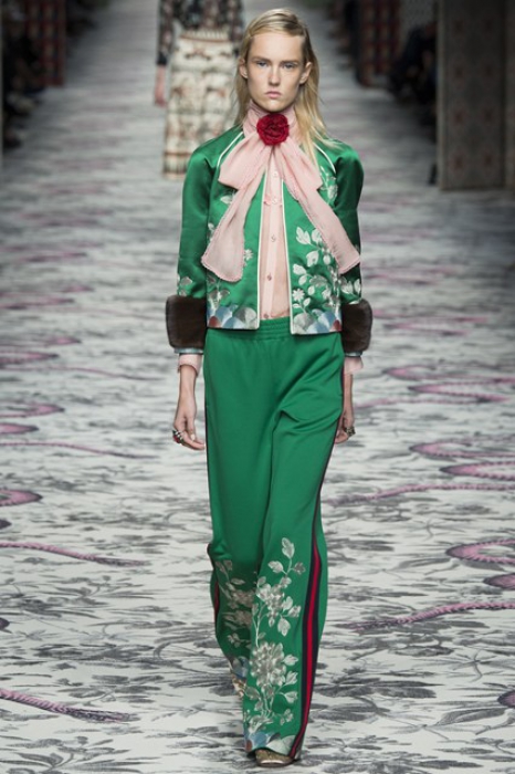 В прошлом году мы рассказывали про стиль «athleisure» (от «athletic» и «leisure») и моде на псевдоспортивные вещи. За это время беговые кроссовки с платьями, кроп-топы, легинсы и другие проявления нормкора уже успели нам надоесть, а на подиуме осталась только одна спортивная вещь — и это тренировочный костюм. Целиком или по частям он замечен в осенне-зимних коллекциях Gucci, Vetements и Off/White, а судя по круизным лукбукам, костюм задержится в трендбуке, как минимум, еще на год.