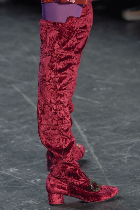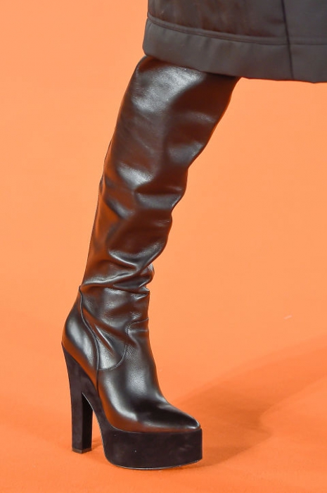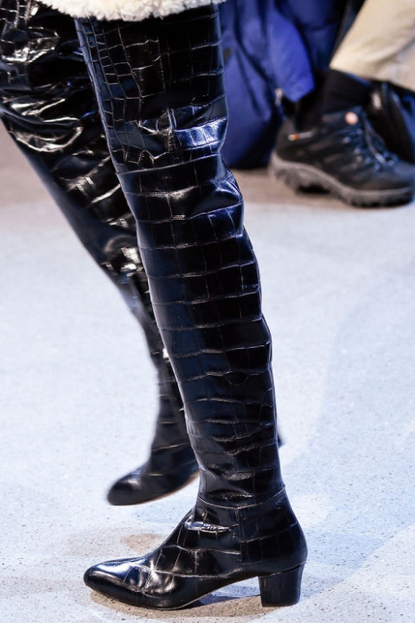 Высокие сапоги больше не ассоциируются с вульгарными ботфортами: Рианна и Puma, например, представили кроссовки до колен, а варианты Balmain и Vetements и вовсе заменяют брюки. Шпилька — тоже необязательный атрибут: широкий устойчивый каблук искать у моделей Anna Sui или Altuzarra.