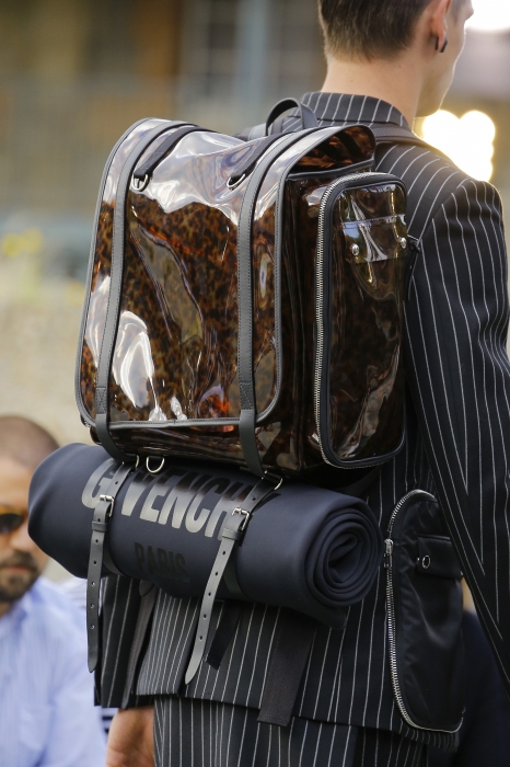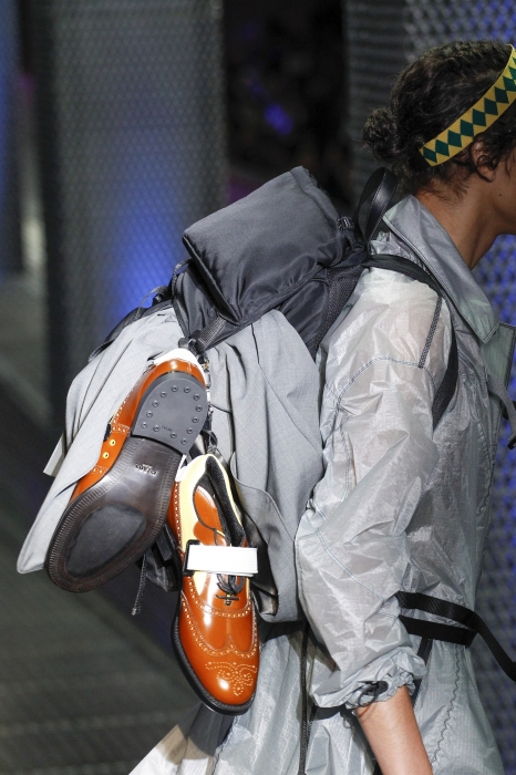 Прием, который заметно упрощает жизнь по трем позициям. Во-первых, из-за рюкзака за спиной, как на шоу Prada, вас больше не будут ассоциировать с хипстером. Во-вторых, дополнительная сумка для условной «сменки» больше не нужна: к рюкзаку незазорно будет прикрепить туфли, кроссовки или коврик для йоги (пусть все знают, что вы делали утром и куда собираетесь вечером). В-третьих, такой стайлинг — отличный повод показать миру красивые босоножки, купленные на зимней распродаже, не дожидаясь мая.
