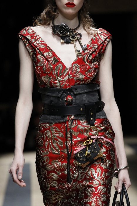 Важное правило сезона: самые привычные аксессуары — браслеты, колье, сумки и клатчи — тоже нуждаются в украшениях. Сумки хотят себе по маленькой сумке, а браслеты, судя по шоу Coach 1941, не откажутся от шелкового платка. На колье или ремень можно прикрепить ключи или крошечные кошельки.