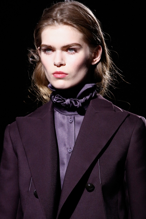 Закрытое горло — популярная и очень здоровая тенденция осенне-зимнего сезона, которая объсняет повальное увлечение дизайнеров и стилистов водолазаками. Их надевают под футболки, рубашки, свитеры, платья, под олимпийки или толстовки. Еще один симпатичный ход — плотно повязать шелковый шарф, как на показазах Chloe, Nina Ricci, или поэкспериментировать с мужским галстуком, как сделали Vetements.