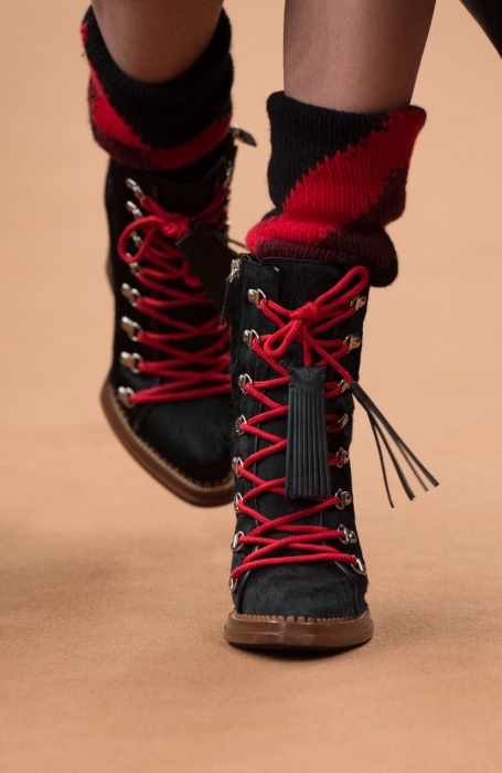 Мы уже рассказывали о популярном приеме стайлинга в мужских коллекциях, где ремень в костюмных брюках заменяют обычной альпинисткой веревкой. А на женских показах эту же деталь используют вместо шнурков. Купить веревку можно в любом аутдор-магазине по цене 45 рублей за метр.