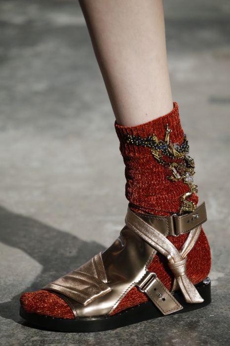 Ugly-стайлинг во всей мощи: во-первых, забываем стереотип о том, что нельзя носить сандалии и лоуферы с носками, а во-вторых, идем во все тяжкие, как на шоу Tod’s и 3.1 Philip Lim, и достаем из шкафа теплые носки, заботливо подаренные мамой или бабушкой.