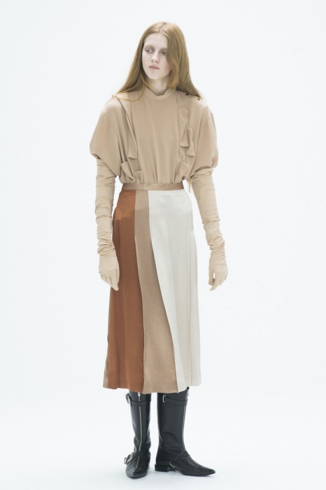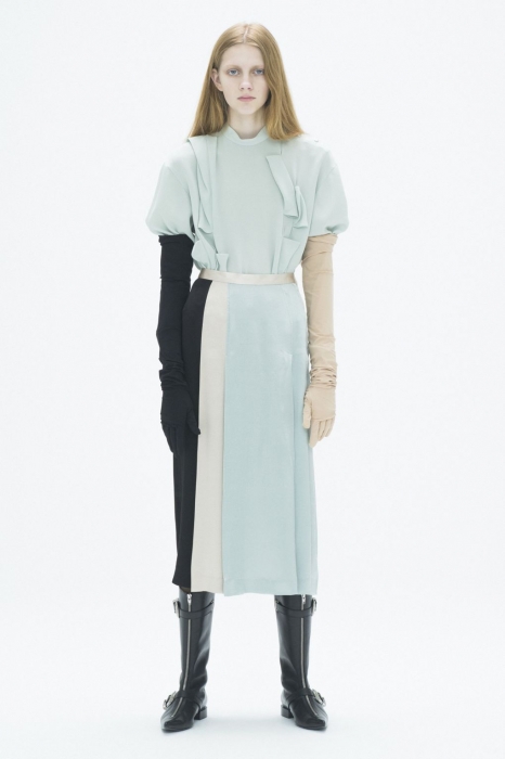 Грубым длинным перчаткам нужны в пару наряды легкой фактуры: кружевные или атласные платья и шелковые блузы. Акценты можно сделать и на цветах, как в лукбуке Each x Other: к черному аксессуару мотоциклистов подбираем только белоснежные или бежевые вещи.