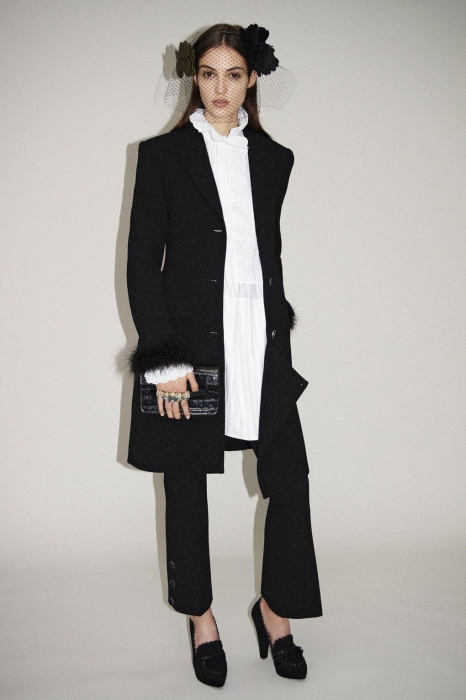 Эффектный стайлинг, максимум драмы и минимум потраченных сил — это фата, как в лукбуке Sonia Rykiel. Повторить такую можно самостоятельно с помощью сетки и бархатных цветов, а носить аксессуар советуем с вещами, напоминающими о викторианском стиле.