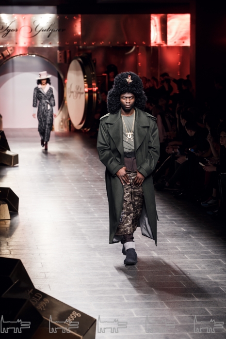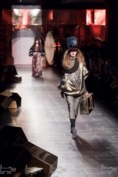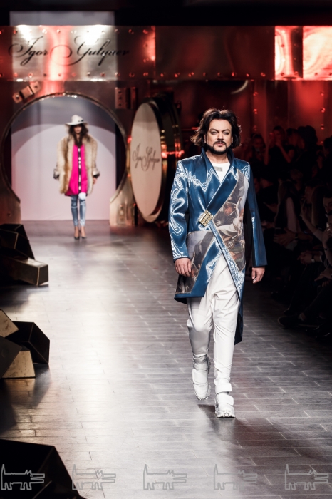 Вчера в ЦВЗ «Манеж» прошел Mercedes Benz Fashion Day, финалом которого стал показ дизайнера Игоря Гуляева «Высшая проба». Открыл шоу большой друг модного дома Филипп Киркоров в тотал-лук IGOR GULYAEV Special for FILIPP, придуманном лично для короля отечественной эстрады в честь 50-тилетнего юбилея, и обуви Massimo Renne by IGOR GULYAEV. Кроме этого, артист еще несколько раз прошелся по подиуму, на котором «уронили» гигантские золотые слитки, демонстрируя предметы из коллаборации Игоря Гуляева и артиста шоу-балет «Я» Власа Владимирова – Vlassimo by IGOR GULYAEV, дизайнер и артист объединились специально для осмысления сценического образа Филиппа. В финале шоу на поклон вышли все трое.
