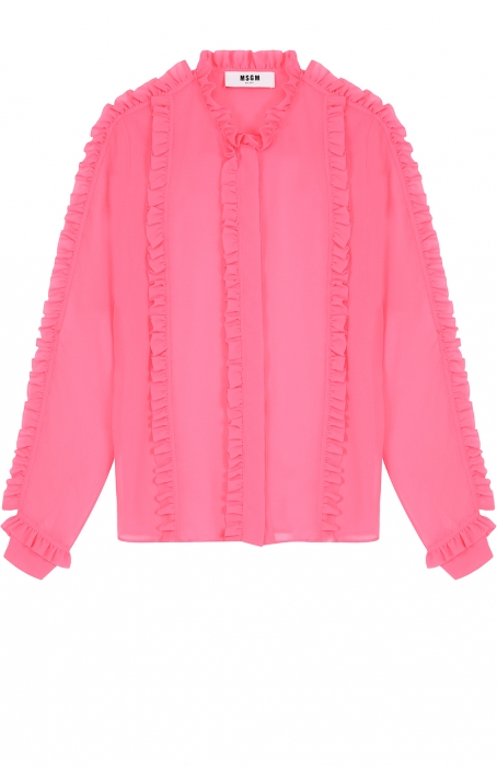 Розовый перекликается с другими актуальными тенденциями: рюшами (MSGM), логоманией (Rochas), бомберами (Emilio Pucci, Saint Laurent), косынками (Terekhov), надписями о том, что девочки — это сила, а также металлизированными футуристичными аксессуарами, которые показывают, что розовый — не только наше прошлое, но и будущее.
