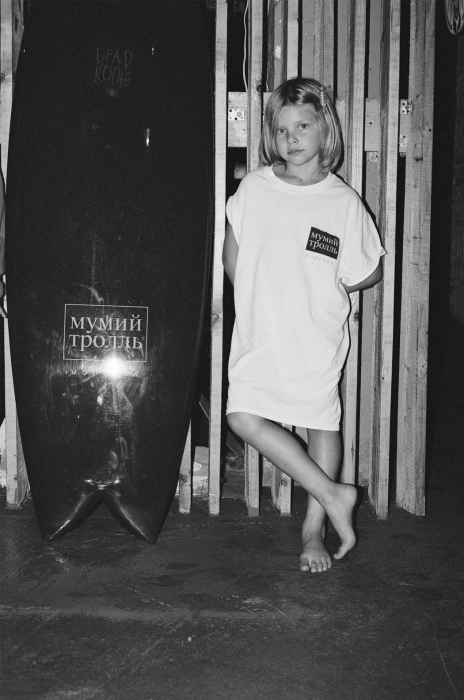 Чтобы отснять лукбук музыкально-дизайнерской коллаборации, Гоша отправился во Владивосток, где самостоятельно фотографировал друзей и двух маленьких дочерей Лагутенко. Помимо них в центре истории оказалась брендированная доска для серфа, которую, к сожалению, нельзя купить вместе с другими вещами из коллекции. Она будет выставлена на витринах лондонского Dover Street Market, парижского Trading Museum и сеульского Comme des Garcons, куда вскоре приедет коллаборация. В России ее можно будет приобрести только онлайн, но не исключено, что она появится в крупных ритейлерах и концертах «Мумий Тролль» в качестве мерча.