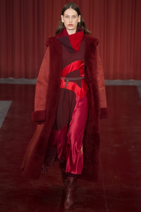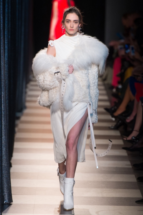 На смену платьям-комбинациям, надетым на бланковые футболки, пришли платья-фартуки, надетые на меховые куртки. Stella Jean в своей русско-советской коллекции нарисовала на вещах иллюстрации к сказке «Морозко» и, кажется, взяла оттуда же приемы стайлинга. Теперь тулупы носят не поверх, а снизу сарафанов, кастомизируя косынками, роговыми очками и макияжем «Мамаш, брови намажь».