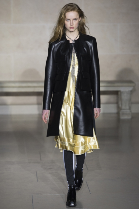 Длинное пальто решает в этом сезоне все, спасая от холода, грязных брызг и наспех надетых треников. А еще оно прячет дресс-кодовое платье в пол, оставляя внизу лишь намек на его принт и фасон. Моднейшая комбинация сезона — летний аляповатый сарафан и пальто с кейпом, которые есть и у миланского Gucci, и у американского Altuzarra — их не хочется сдавать в гардероб даже на самой жаркой вечеринке.