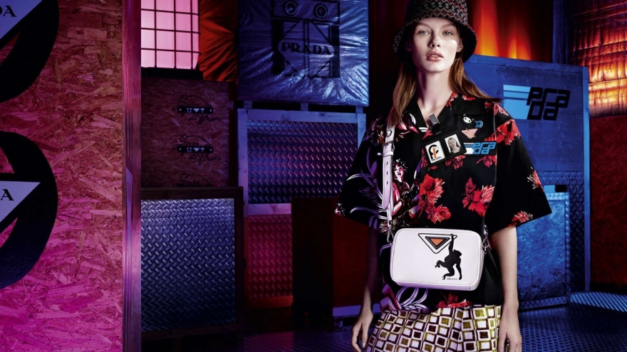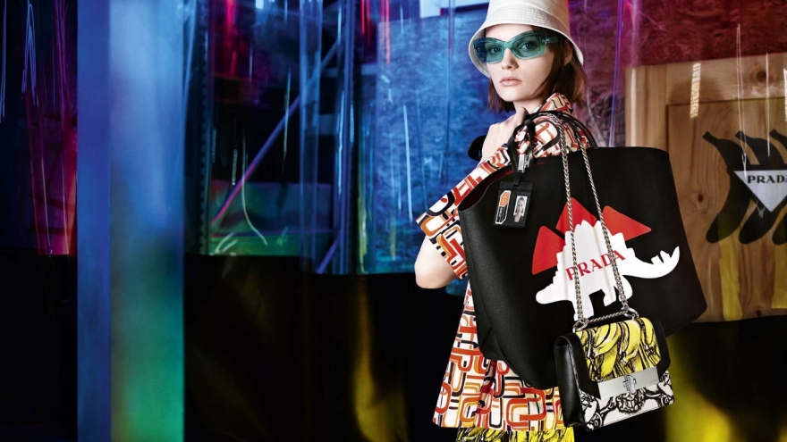 Prada показали кампейн женской коллекции pre-fall, снятой фотографом Вилли Вандерперре в заводских помещениях Prada Warehouse в Милане. Знаковые вещи линейки — например, брелоки-роботы и переизданные босоножки с пламенем — стали граффити на неоновых вывесках и деревянных ящиках, но в центре внимание были другие модные элементы — вместительные сумки с динозаврами, нейлоновые панамы, ботильоны-чулки, оверсайз-костюмы из неопрена и бейджики с фотографиями моделей из кампании — Крис Грикайте, Фрэн Саммерс и Анок Яй.