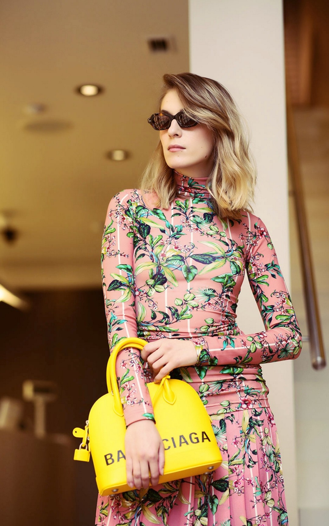Топ и юбка Vetements с цветочным принтом, как обычно у Демны Гвасалии, оказываются не тем, чем кажутся. Милый флористический орнамент вдруг ощеривается ядовитым психоделическим вьюном. Дико красиво! (DayNight)
