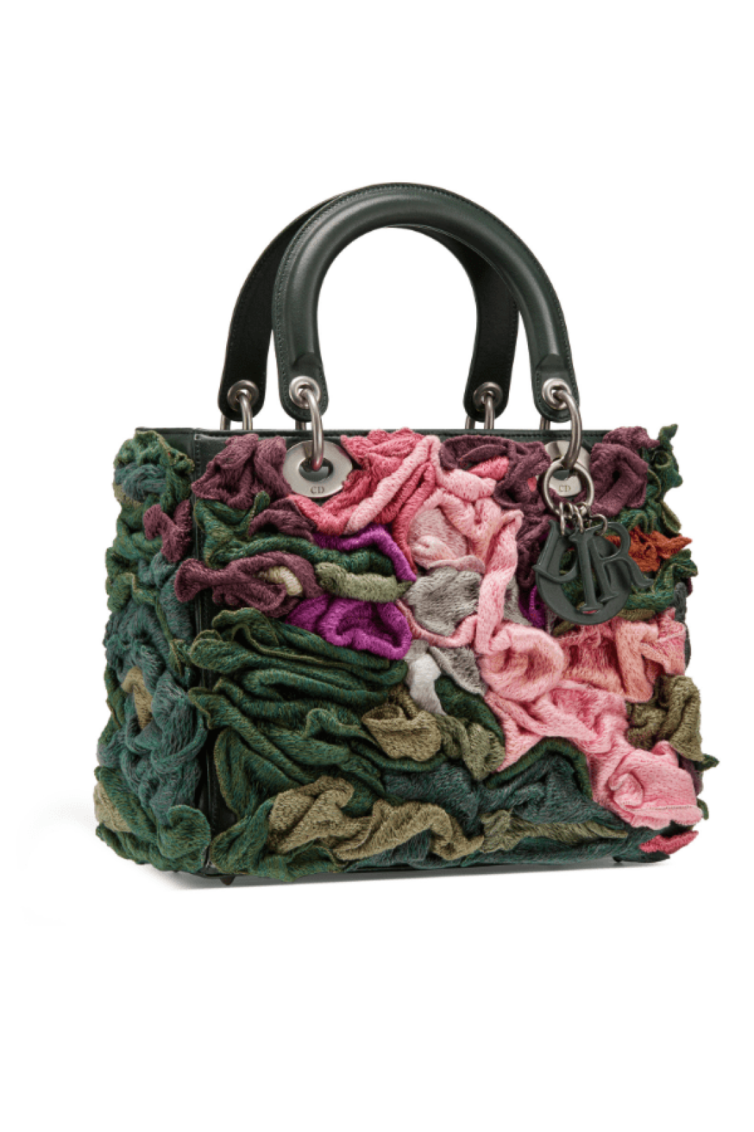 Для третьего лимитированного выпуска Dior Lady Art Мария Грация Кьюри пригласила одиннадцать художниц, каждой из которых был дан карт-бланш на трансформацию культовой модели сумки. И теперь мы мечтаем о спрессованных розах Янины Чапе — она как будто собрала в геометричную форму все деликатные цвета Гранвиля, любимого поместья Кристиана Диора в Нормандии. (Dior)