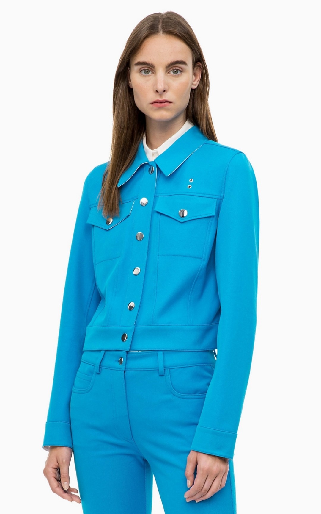 Лазоревая кожаная куртка в фасоне классической джинсовки с заклепками — прощальный привет Рафа Симонса из его последней коллекции для Calvin Klein. Вдохновленную нью-йоркскими club kids из панк-клуба CBGB 1970-х модель мы наденем на рейв от Present Perfect в «Севкабель Порт». Да, джинсы в тон обязательны. (Calvin Klein, ТРК «Гранд Каньон»)