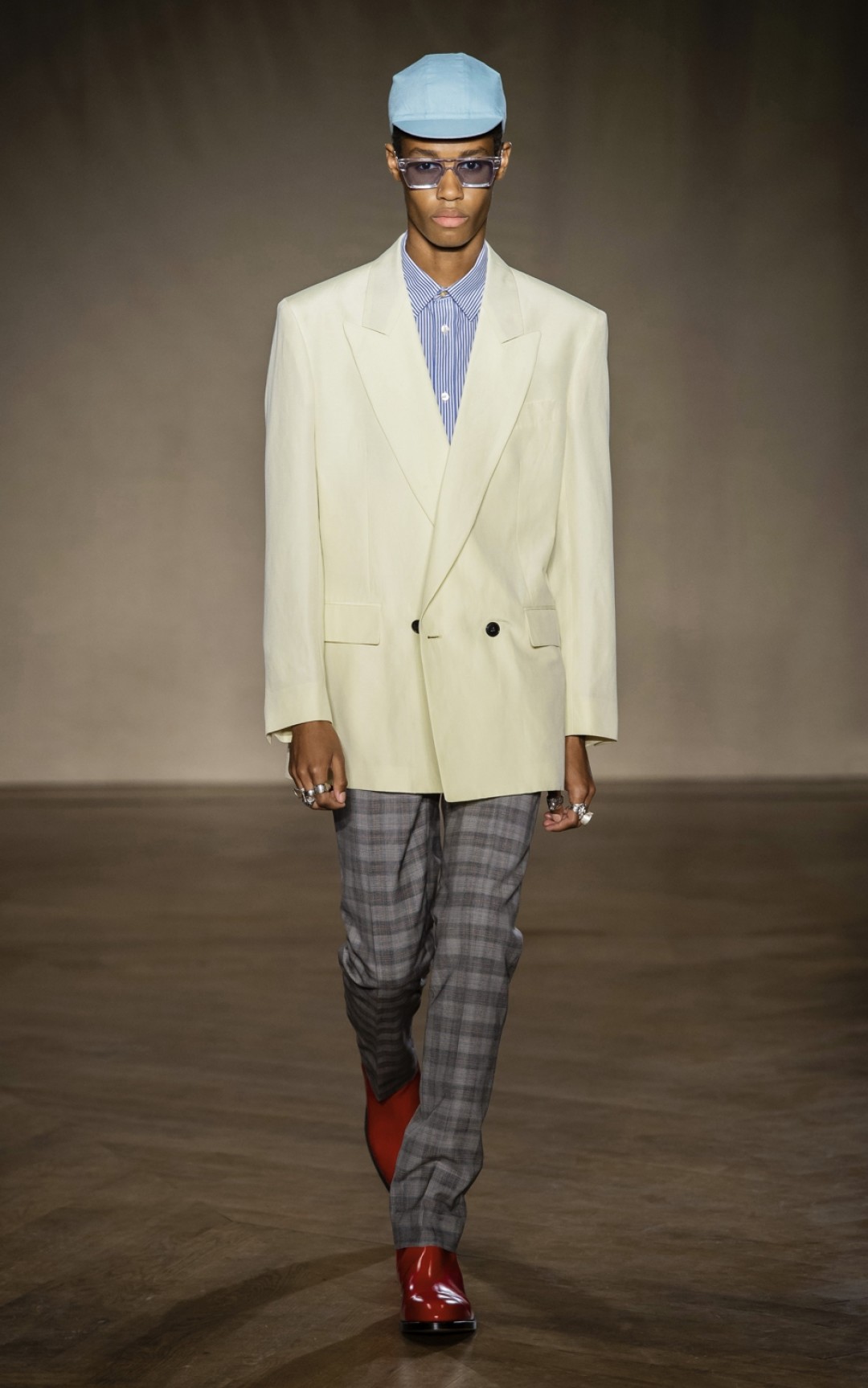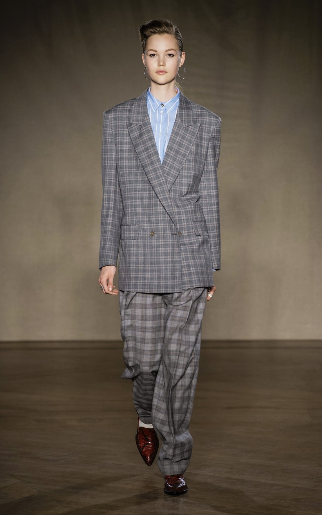 Знаете, как у бренда Paul Smith появилась женская линия? В конце 1980-х, подводя итоги года, сэр Пол Смит обнаружил, что пятнадцать процентов продаж в его мужских бутиках пришлось на долю девушек, которые просто покупали костюмы и рубашки на пару размеров меньше. Спустя тридцать лет история повторяется: мягкие двубортные пиджаки в крупную клетку, широкие брюки с отворотами и стрелками, мешковатые пальто с воротниками-стойками и приталенные костюмы с яркими принтами на шелковой подкладке мы снова будем делить пополам! А чтобы предотвратить битву при гардеробе, сэр Пол проявил гендерную осознанность и повторил все эти необходимые для весны вещи в женской коллекции. (Paul Smith)