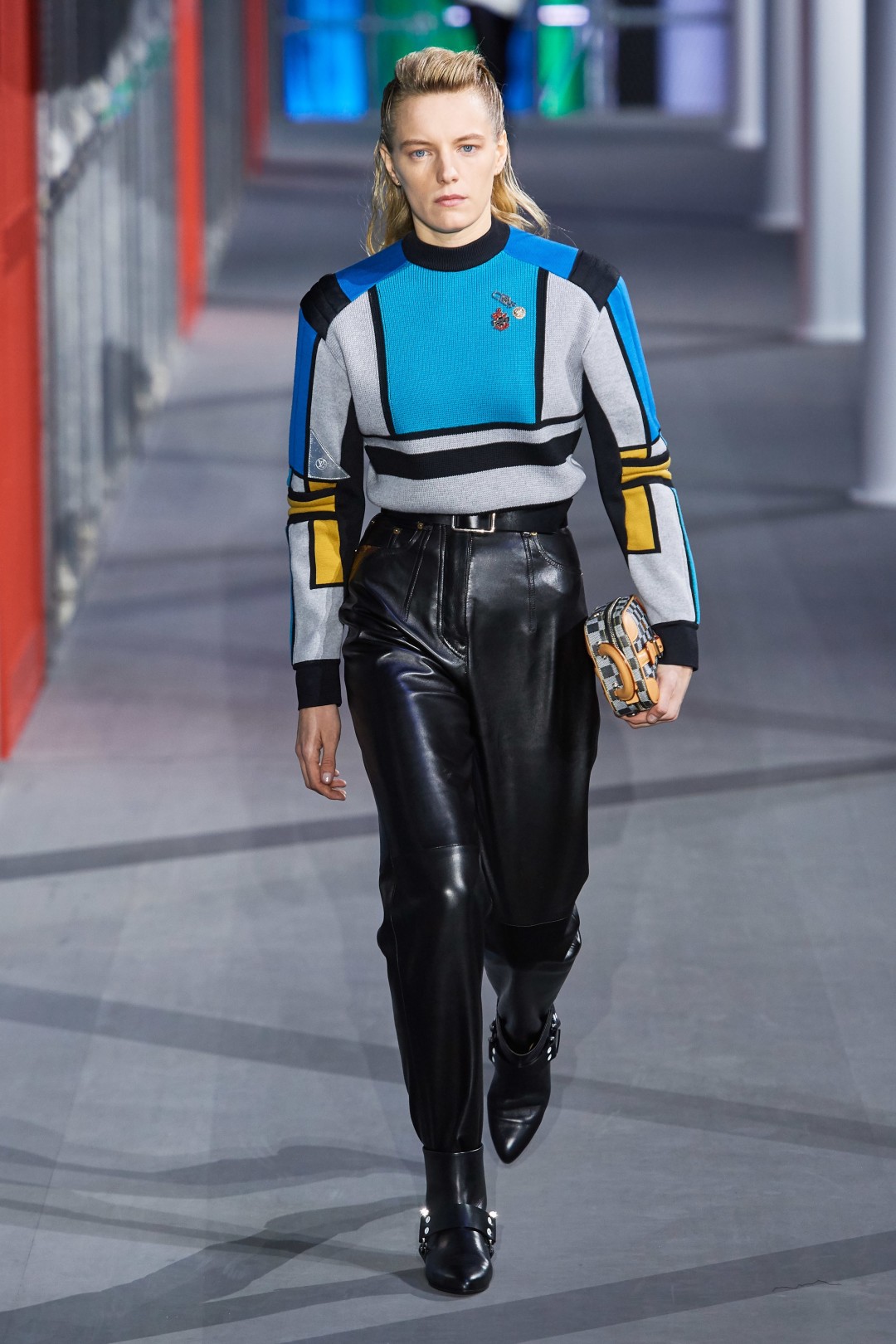 В Лувре прошел показ осенне-зимней коллекции Louis Vuitton, закрывший парижскую Неделю моды. Как объяснил креативный директор бренда Николя Гескьер, идея шоу — воссоздать «племена» и «субкультуры», разделявшие людей до того, как Instagram заставил всех выглядеть одинаково. Дизайнер продолжил добавлять к классическим вещам Louis Vuitton с монограммой индивидуальные, экстравагантные и вариативные элементы — будь то моносерьга в форме папоротника, плавательная шапочка из кожи или ремень с портретом в поп-арт стилистике.