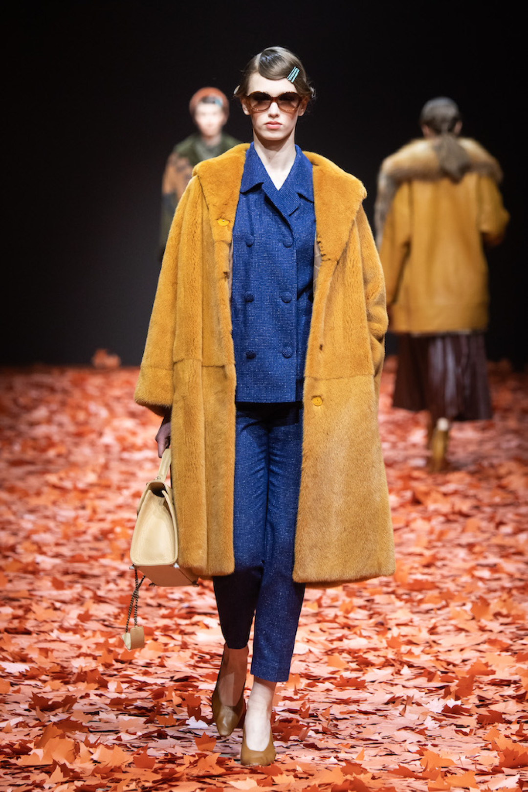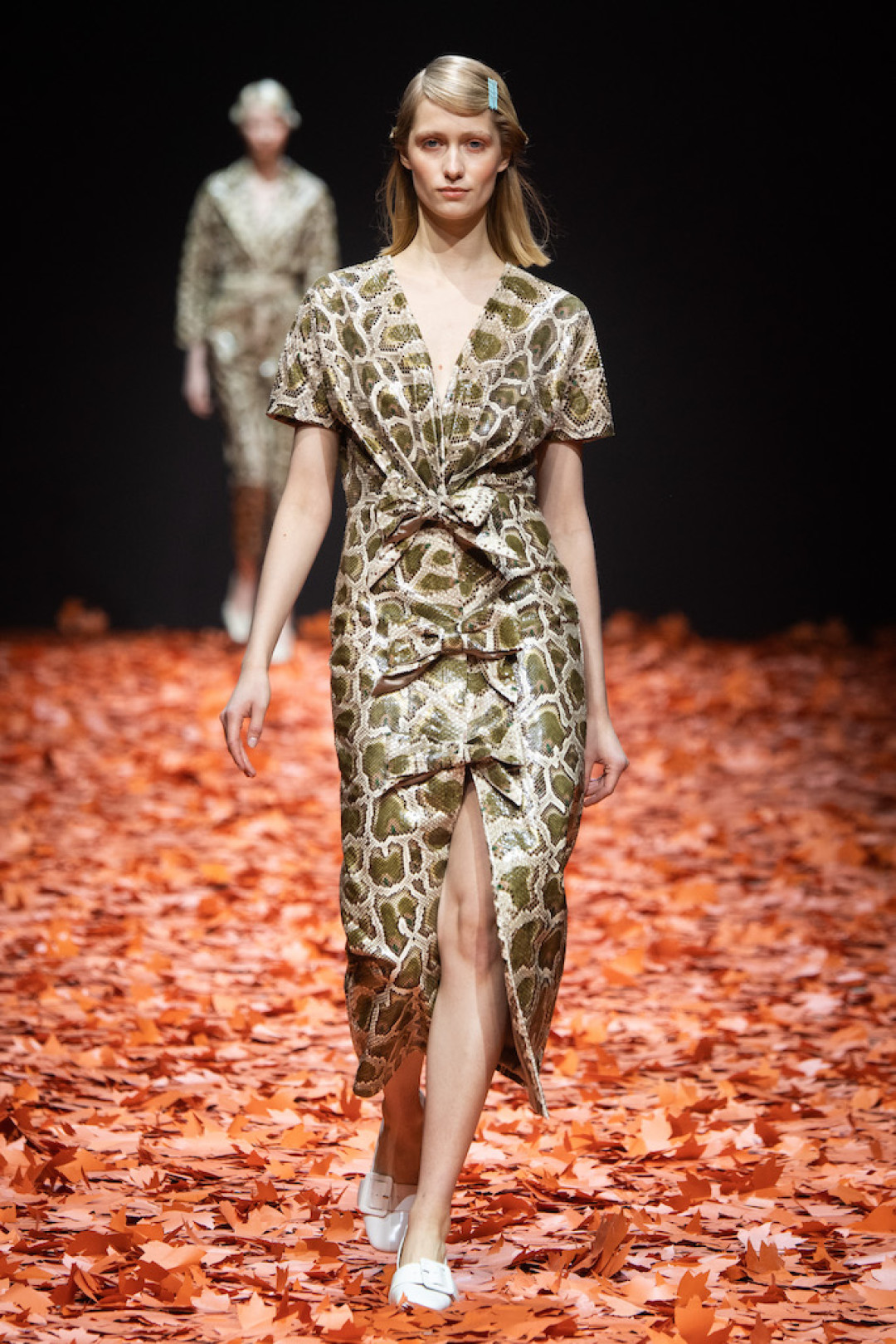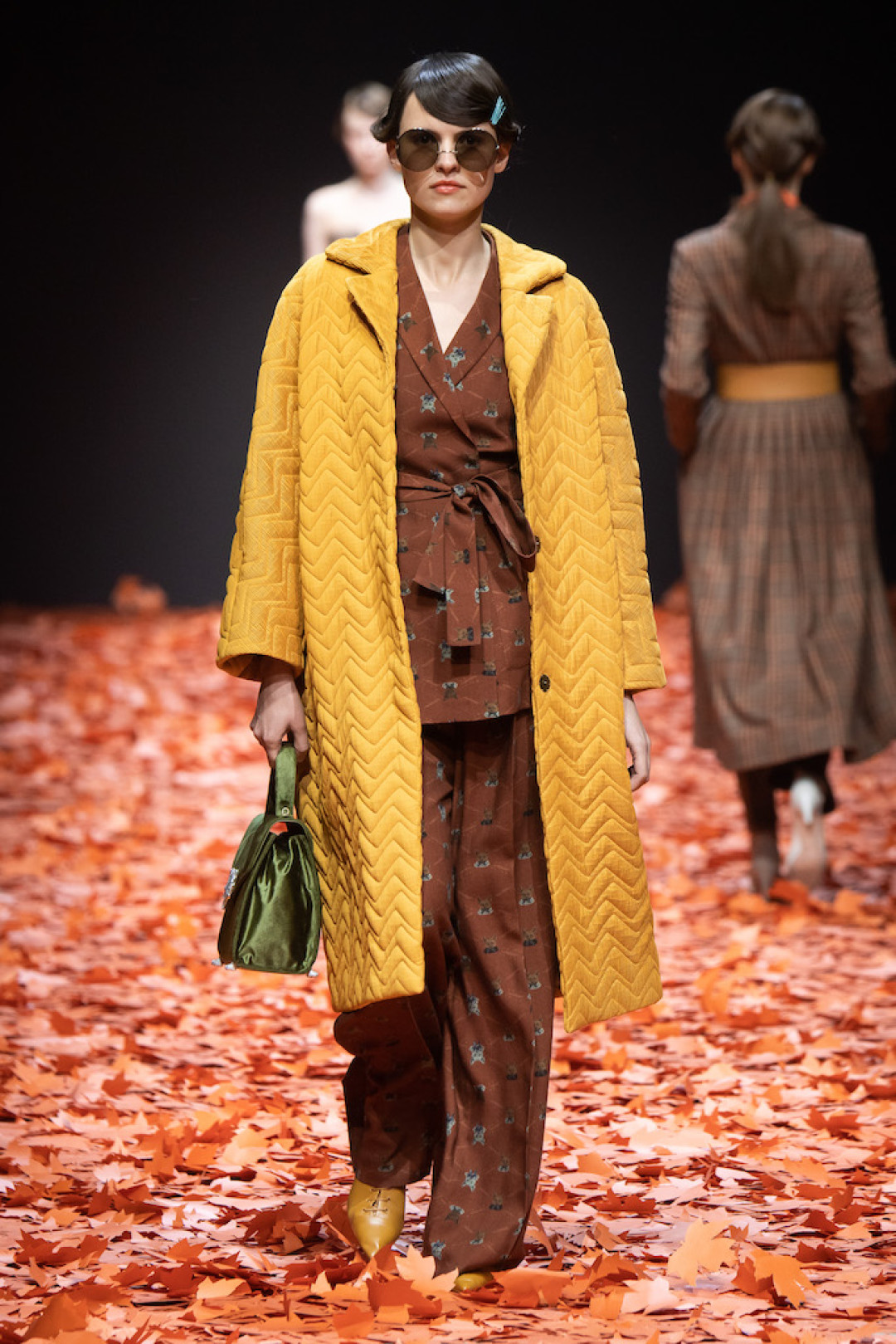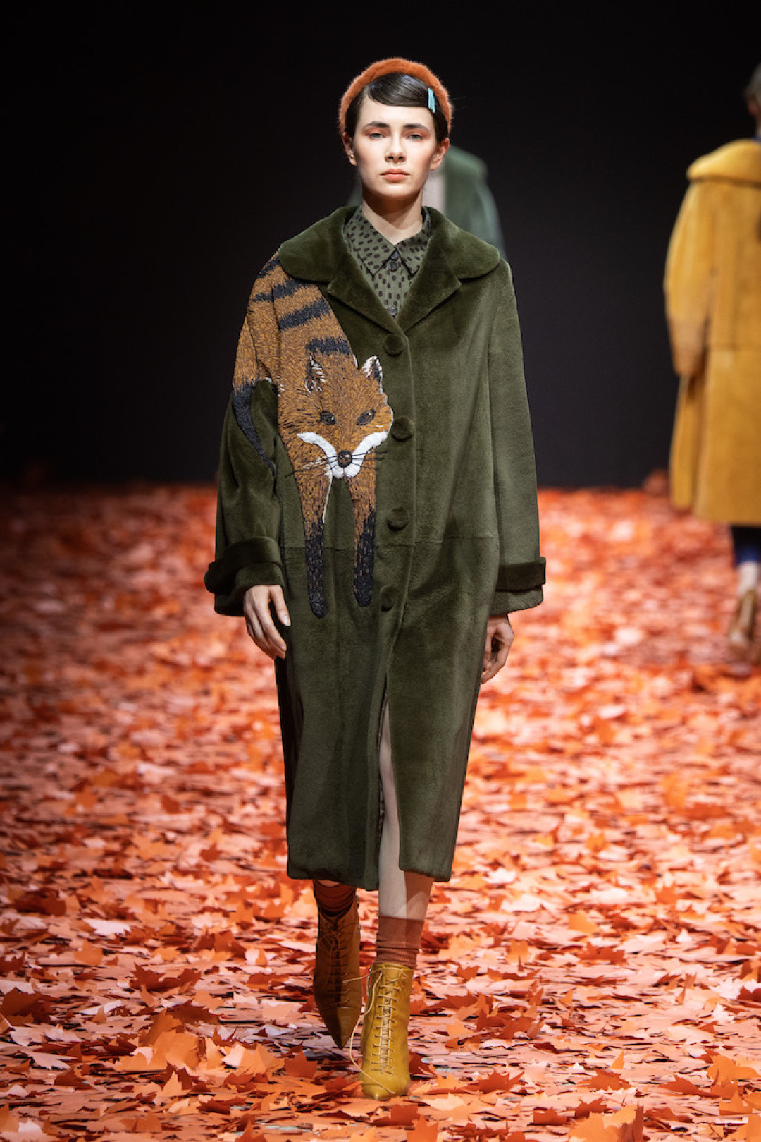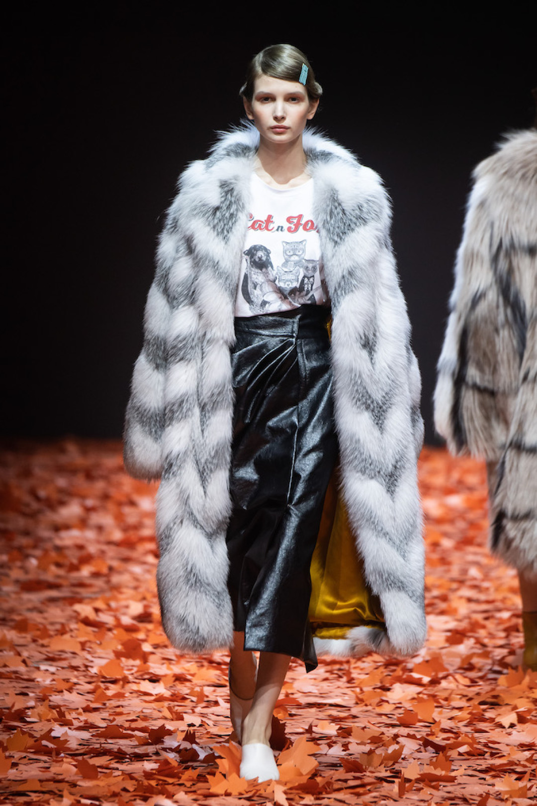 Стайлинг образам делали поясные сумки, меховые ободки, ремни в виде лисьего хвоста и накидки из коллаборации бренда с финским пушным аукционом Saga Furs, который является флагманом в сфере этичного производства пушнины. Изображения лисы и кота Алена Ахмадуллина нанесла даже на, казалось бы, незаметные элементы коллекции — пояса, галстуки и футболки, которые прятались под шубами с «позолоченными» подкладками.