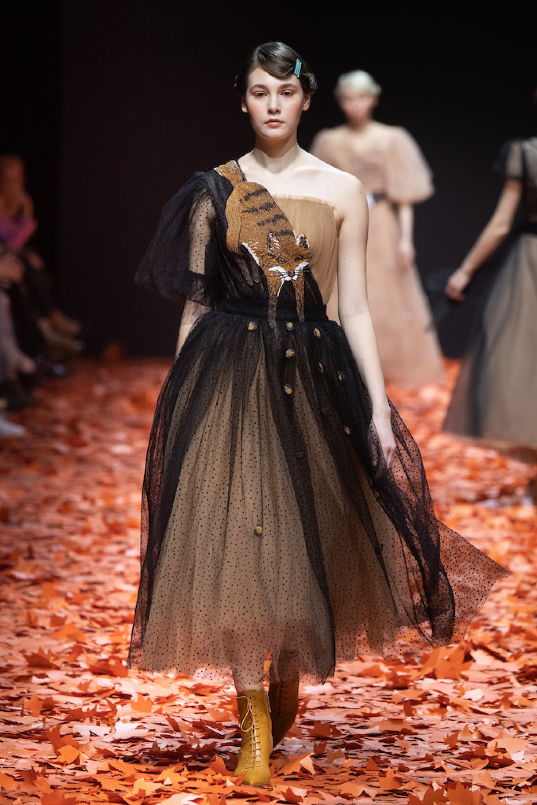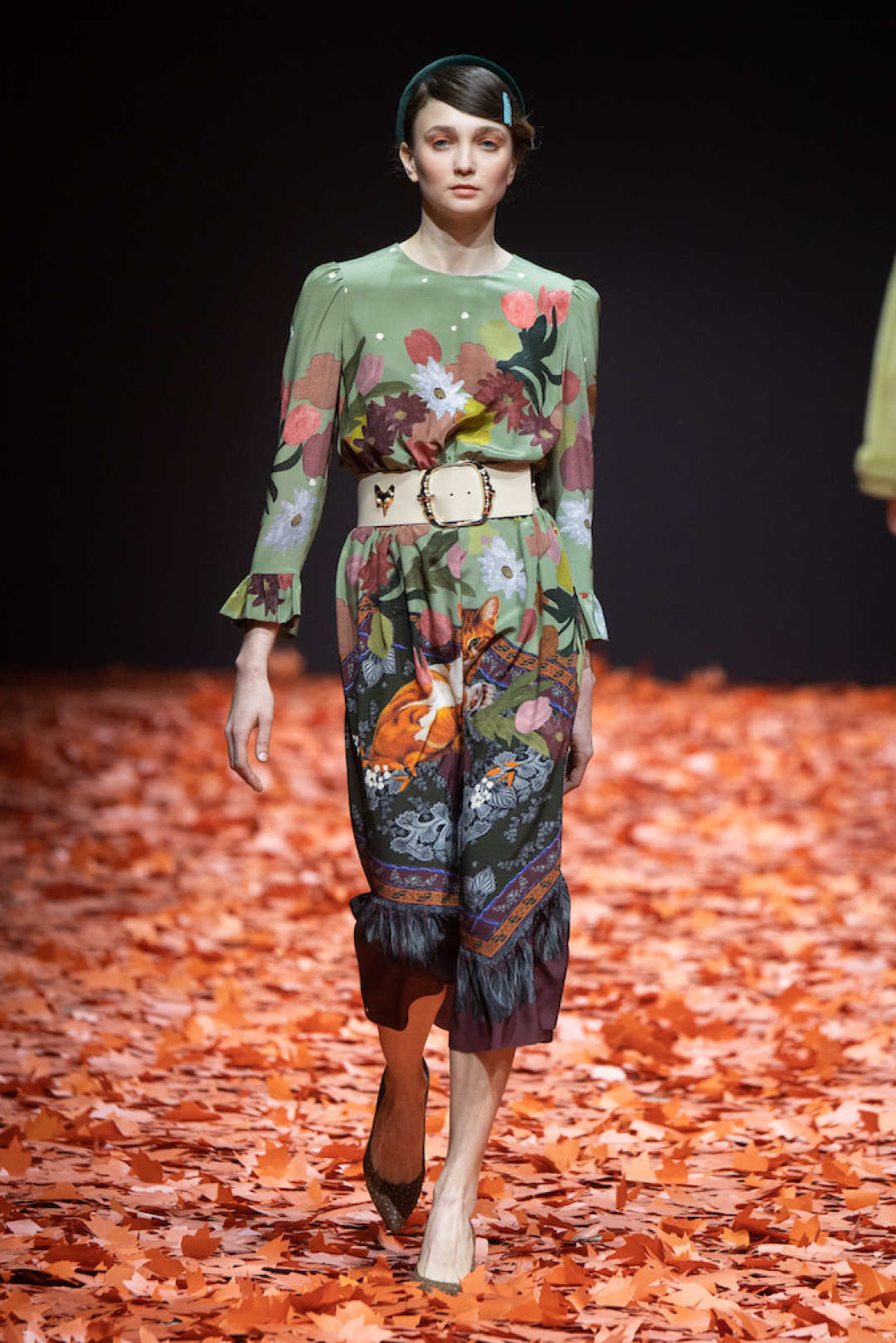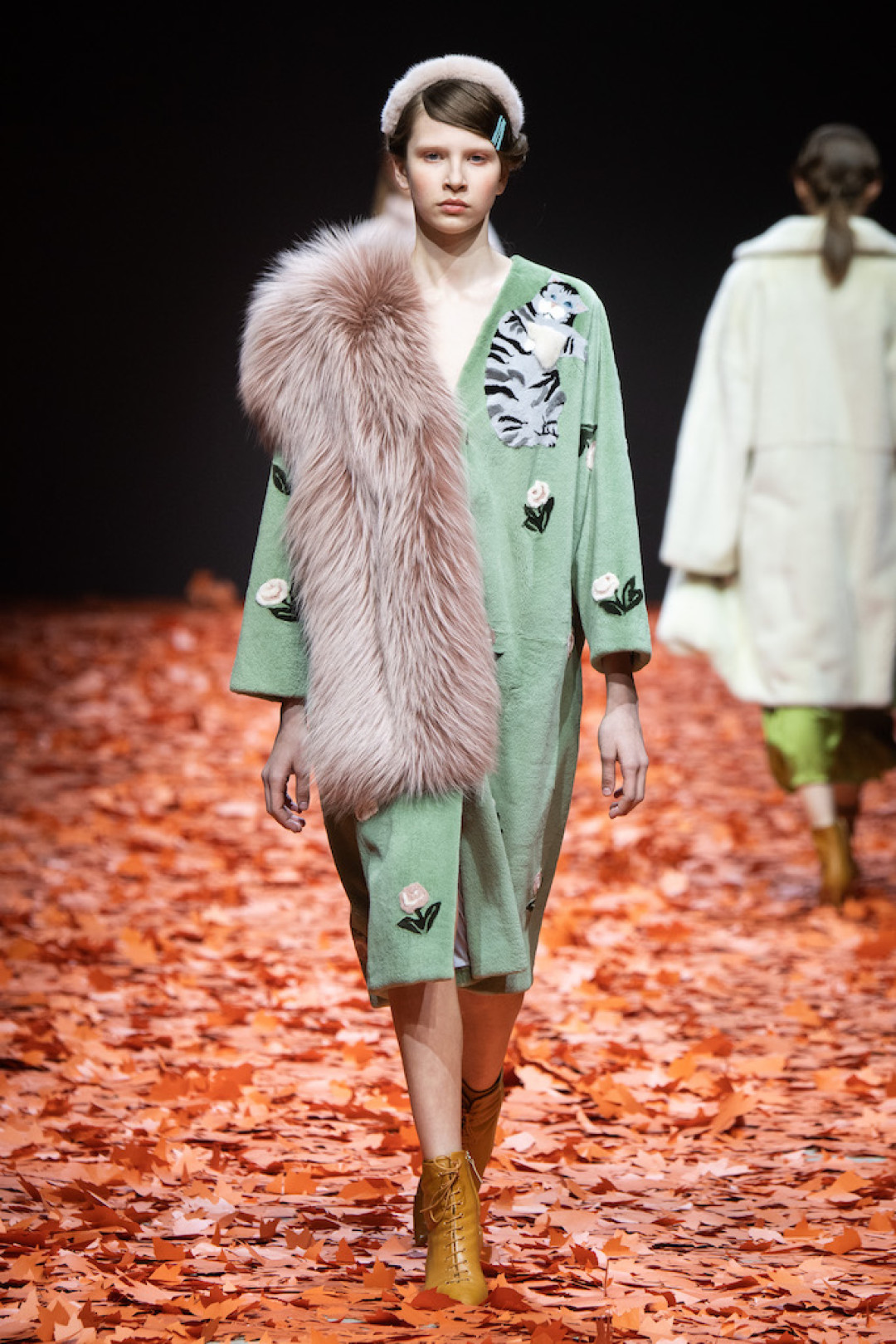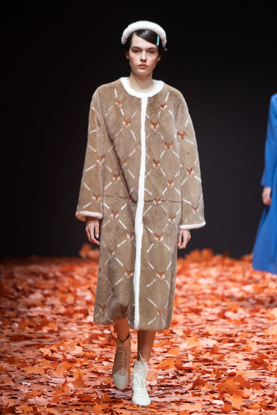 Алена Ахмадуллина показала осенне-зимнюю коллекцию в Музее Москвы в рамках Mercedes-Benz Fashion Week Russia. На платья, пальто, сумки и шубы, сделанные в стилистике 1950-1970-х годов, дизайнер из Петербурга переложила мотив сказки «Кот и Лиса». Лиса появляется в виде купонного принта на нарядах А-силуэта, а кот — в виде вышивки бисером на кутюрных моделях из вечерней линейки.