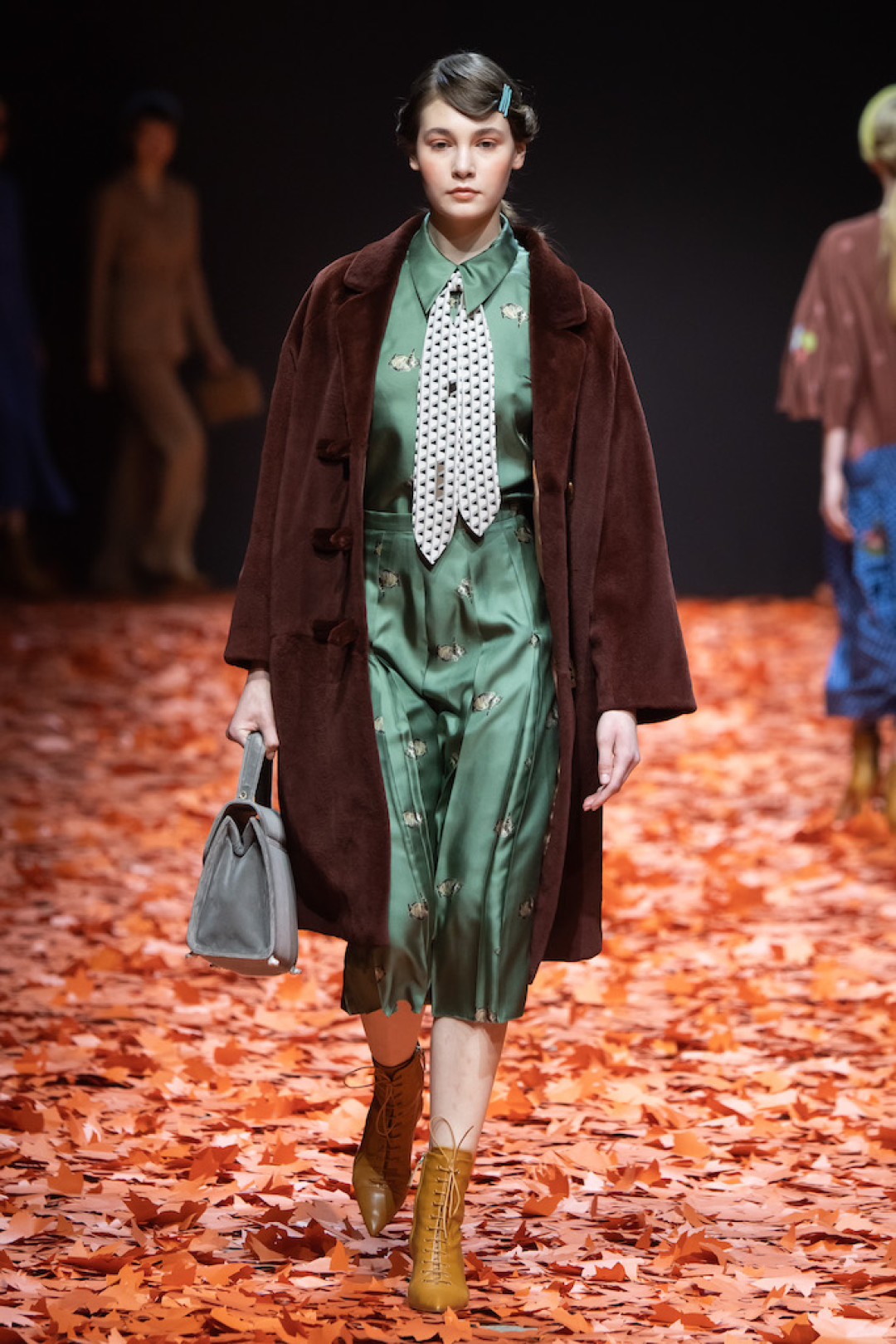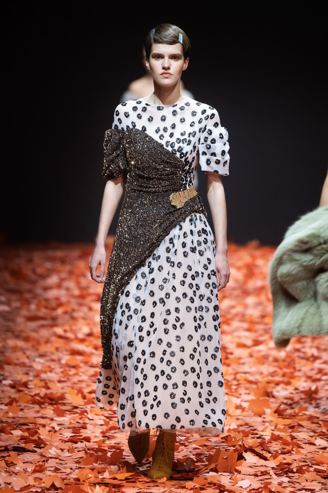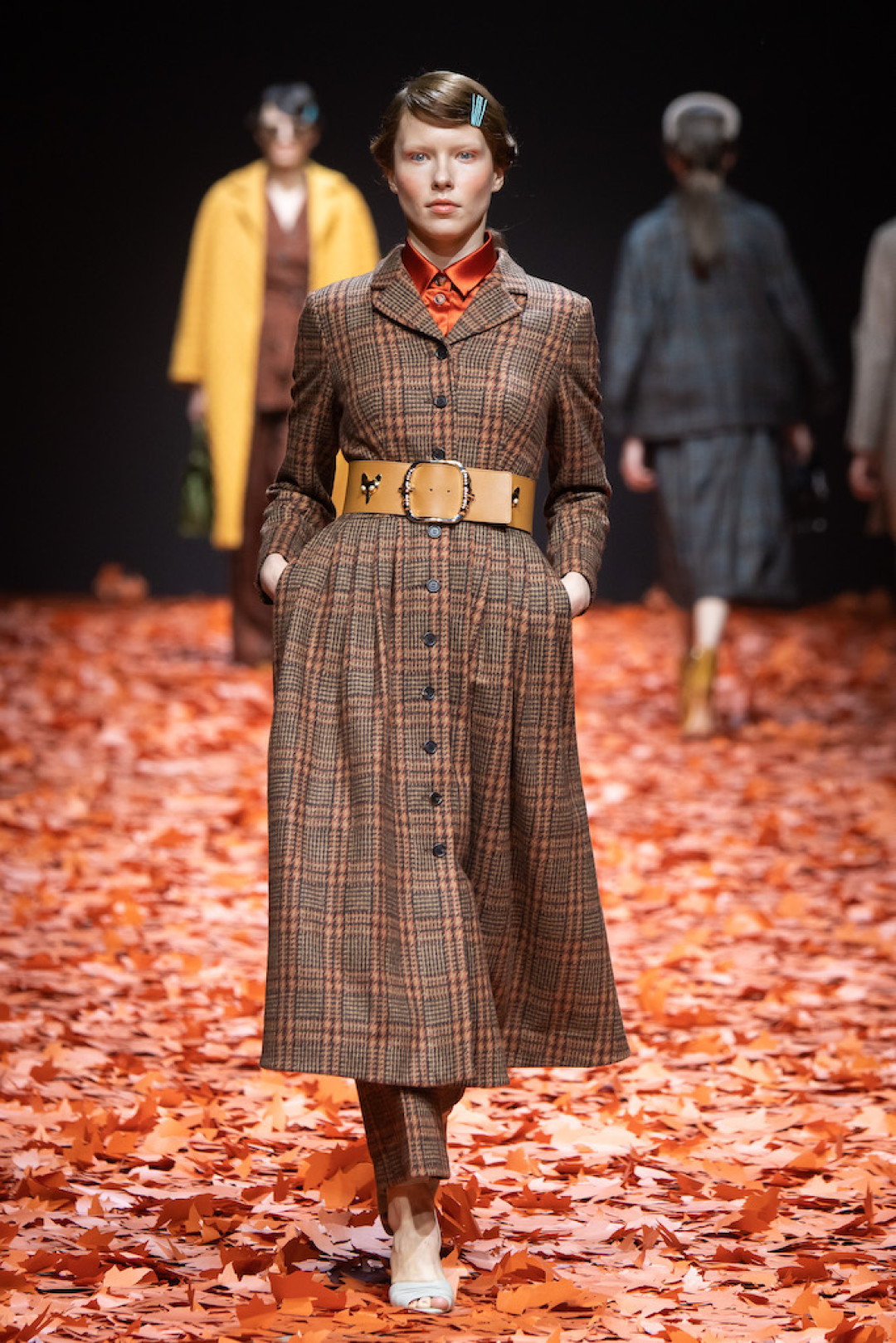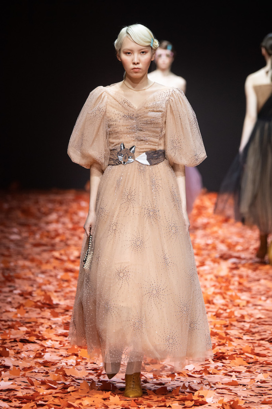 Алена Ахмадуллина показала осенне-зимнюю коллекцию в Музее Москвы в рамках Mercedes-Benz Fashion Week Russia. На платья, пальто, сумки и шубы, сделанные в стилистике 1950-1970-х годов, дизайнер из Петербурга переложила мотив сказки «Кот и Лиса». Лиса появляется в виде купонного принта на нарядах А-силуэта, а кот — в виде вышивки бисером на кутюрных моделях из вечерней линейки.