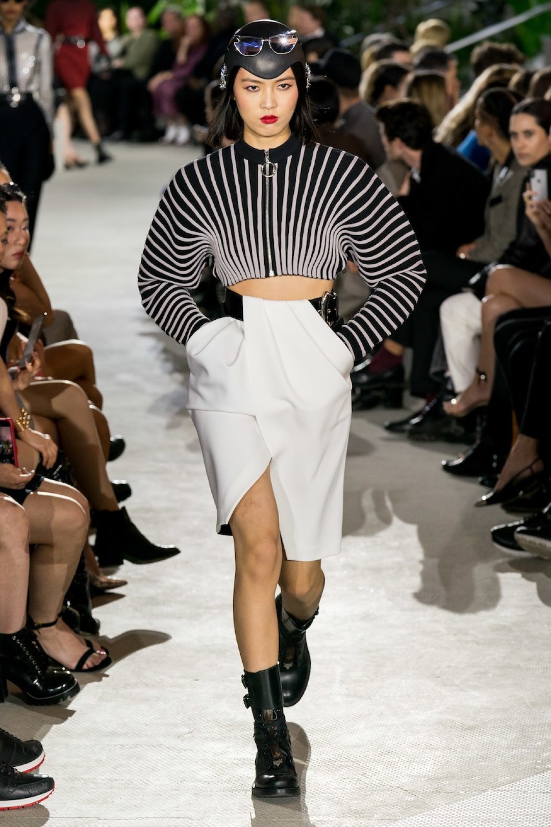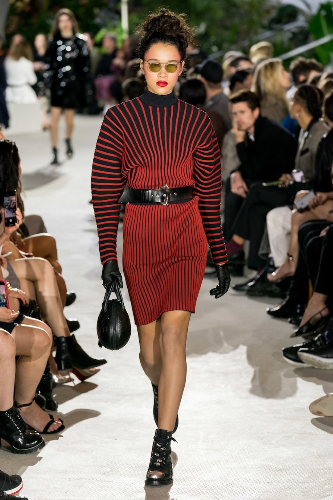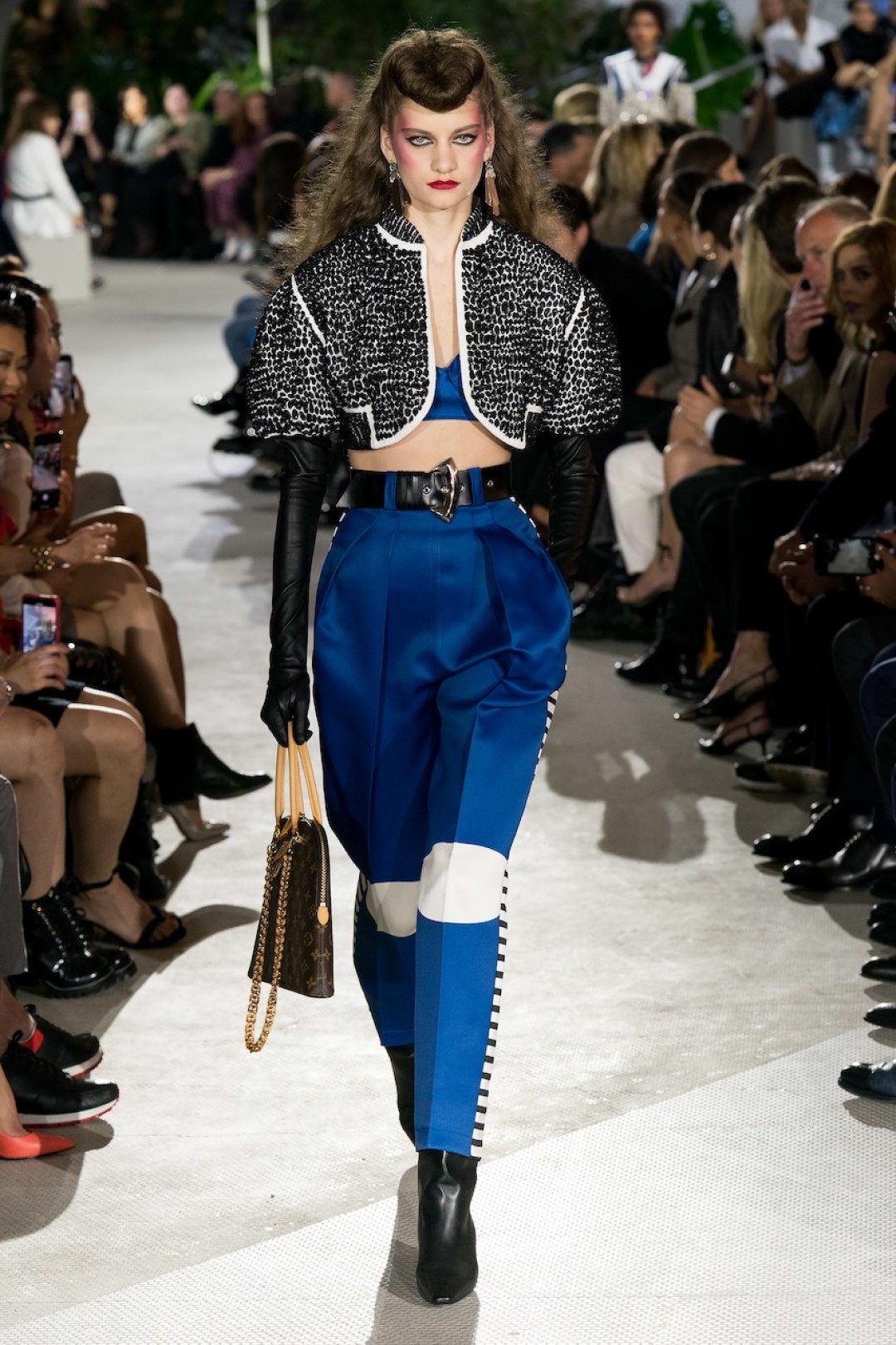 В аэропорту имени Джона Кеннеди в Нью-Йорке прошел показ коллекции Louis Vuitton Resort 2020. Креативный директор бренда Николя Гескьер продолжил рассуждать на тему 1980-х, взяв за основу фильм Ридли Скотта «Бегущий по лезвию». Полосатые костюмы, жакеты с покатыми плечами, взбитые локоны и яркий макияж напоминали главную героиню ленты Рейчел Роузен, роль которой гениально исполнила американская актриса Шон Янг.