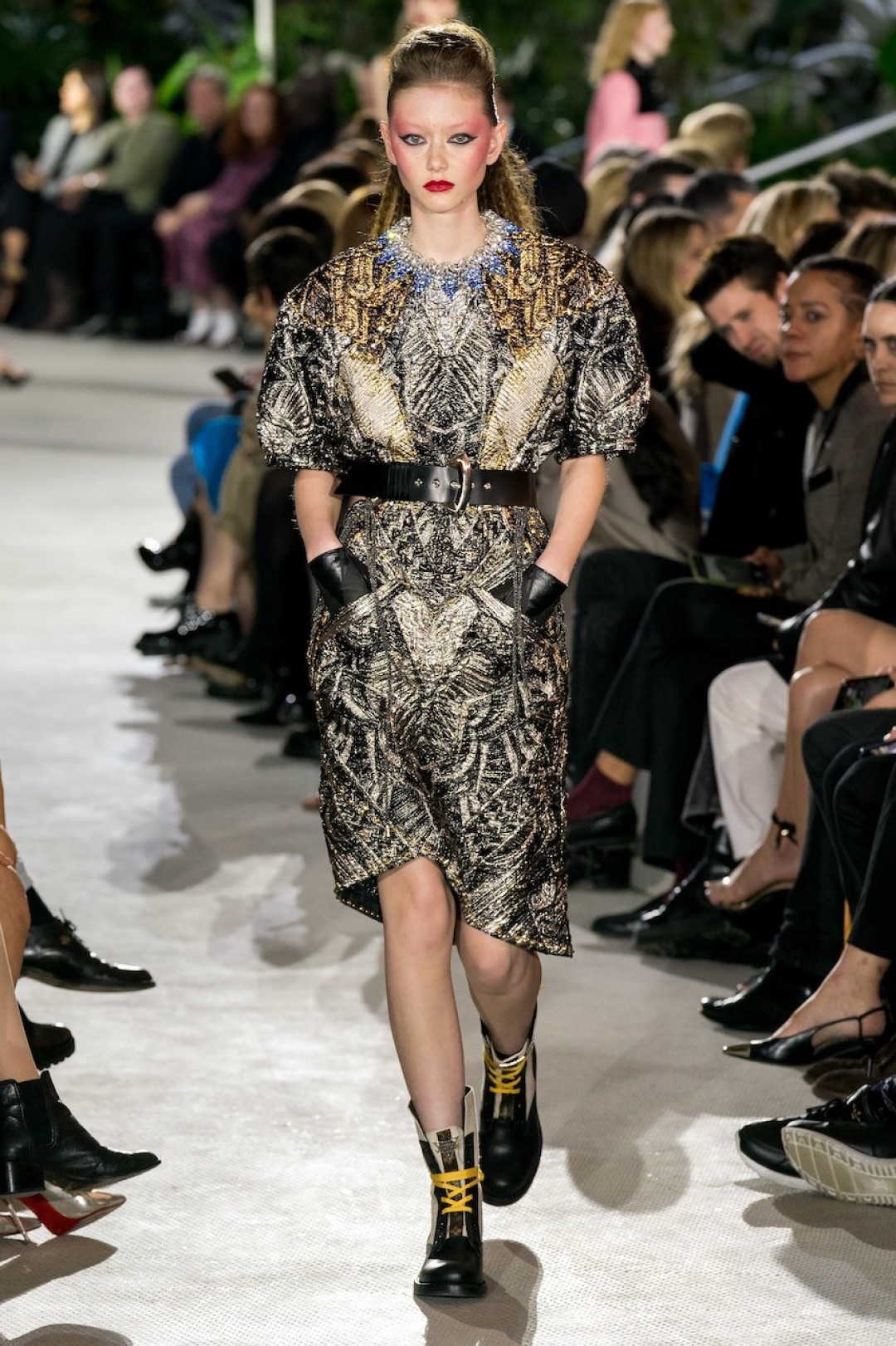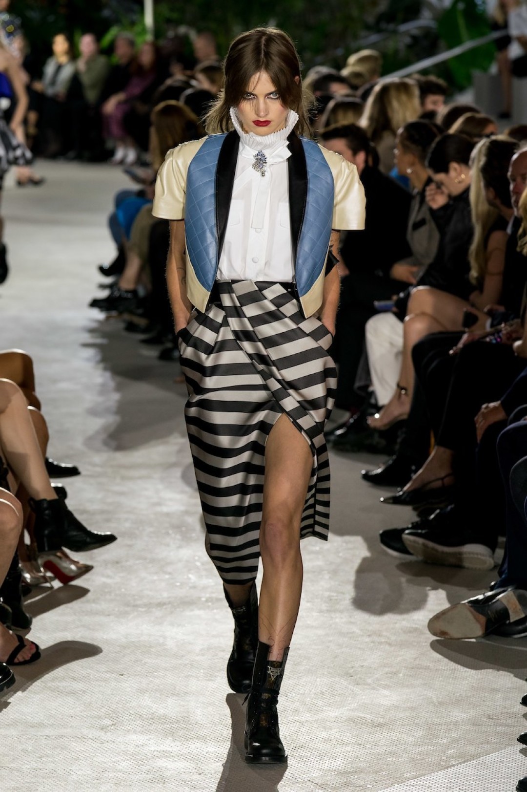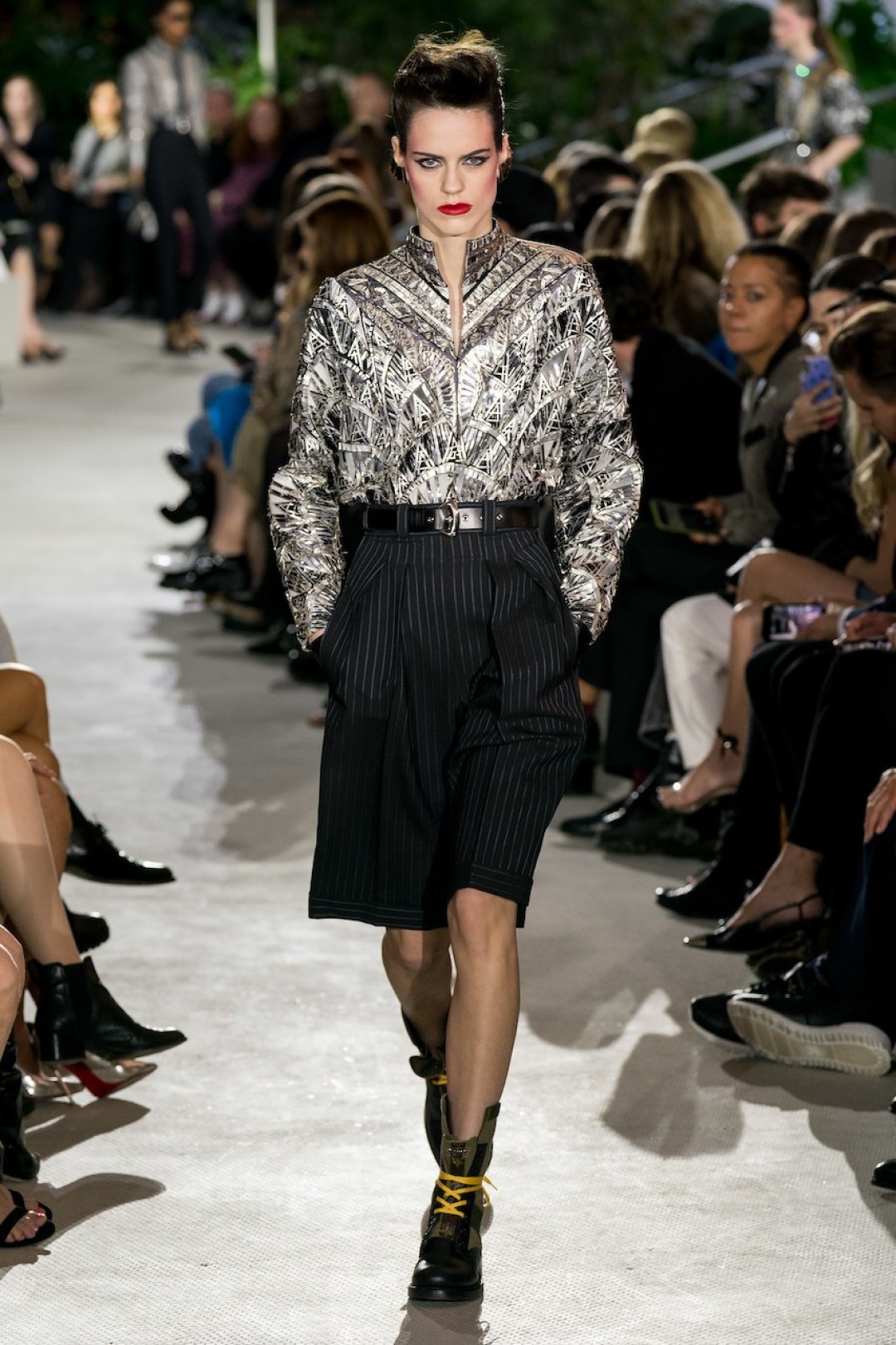 В аэропорту имени Джона Кеннеди в Нью-Йорке прошел показ коллекции Louis Vuitton Resort 2020. Креативный директор бренда Николя Гескьер продолжил рассуждать на тему 1980-х, взяв за основу фильм Ридли Скотта «Бегущий по лезвию». Полосатые костюмы, жакеты с покатыми плечами, взбитые локоны и яркий макияж напоминали главную героиню ленты Рейчел Роузен, роль которой гениально исполнила американская актриса Шон Янг.