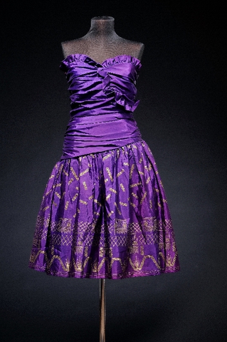 Коктейльное платье Zandra Rhodes, Великобритания. Тафта, вискоза. Принт золотом по ткани.