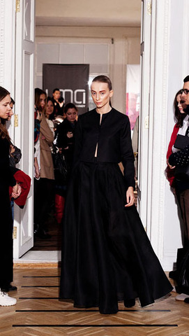 Назвать коллекцию французской сложной, но, в конце концов, готический стиль, в котором она решена, зародился именно во Франции. Графичные силуэты, острые края, драматичные разрезы и V-образные вырезы на жакетах и платьях - вот неполный список характерных модных приемов, отсылающих нас к прекрасному Позднему Средневековью. Первый блок - черный и величественный: плотная шерсть, собранная в пышные складки, и строгие жакеты сложного кроя.