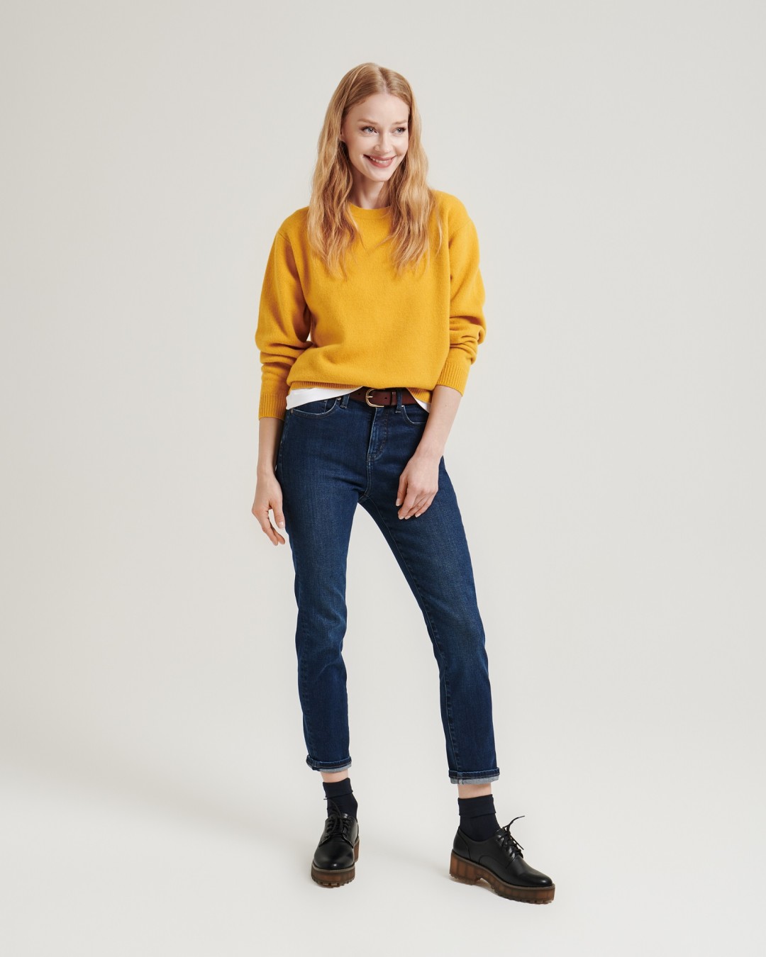 В комплекте с джинсами-скинни с высокой посадкой свитер из овечьей шерсти премиум-класса создает отличный вариант и для работы, и для встреч с друзьями.