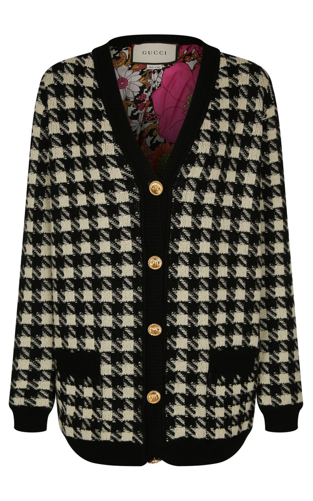 Такие же яркие модели сейчас есть в коллекциях Saint Laurent (с животным окрасом), Miu Miu (с милитари-принтом), Loewe (с новогодними снежинками) и Gucci (с изображением вишенок). Чем абсурднее будет рисунок на кардигане и чем больше он напоминает «бабушкин» вариант, тем лучше: Бал Института костюма, темой которого был стиль «кэмп», кончился, а наша любовь к его дресс-коду вечна!