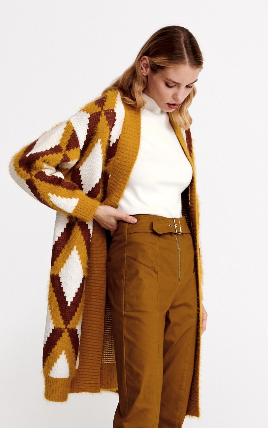 В городах России, где зима стоит девять месяцев в году, такой фэшн-фит точно не прокатит — замерзнете! Поэтому выбирайте модели из шерсти, как в новой коллекции Uniqlo U, и крупной вязки, как в осенне-зимнем ассортименте Tom Tailor, и носите их по принципу многослойности — шелковый топ, джемпер с V-образным вырезом и уже потом кардиган яркой расцветки (учитесь у Оливии Палермо!).