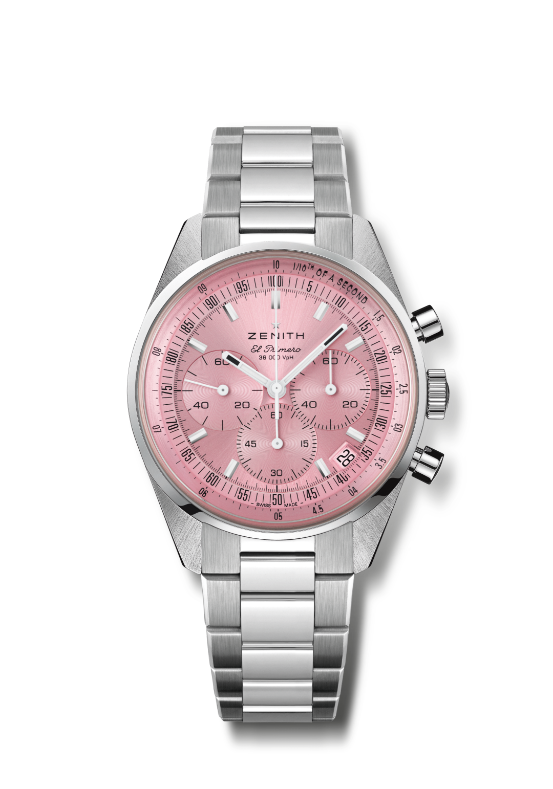 Авиатор Луи Блерио совершил исторический полет через Ла-Манш, парашютист Феликс Баумгартнер — прыжок из стратосферы: Zenith всегда сотрудничал с теми, кто умеет превозмочь ситуацию и свои возможности. Zenith Chronomaster Original Pink — как раз об этом: их задача — повысить осведомленность о раке молочной железы, а 20 процентов от продажи каждой модели идет в поддержку фонда имени Сьюзен Комен (он оказывает поддержку ученым и спасает жизни!). Кроме того, эти часы с высокочастотным калибром El Primero и циферблатом цвета пыльной розы в стальном корпусе стали символом платформы Dreamhers, которая способствует объединению женщин. Недавно к этому комьюнити Zenith присоединились девушки, сделавшие вдохновляющую карьеру: чемпионка внедорожных гонок Кэти Маннингс, ведущая новостей Чиаки Хоран и виолончелистка Эстер Абрами.