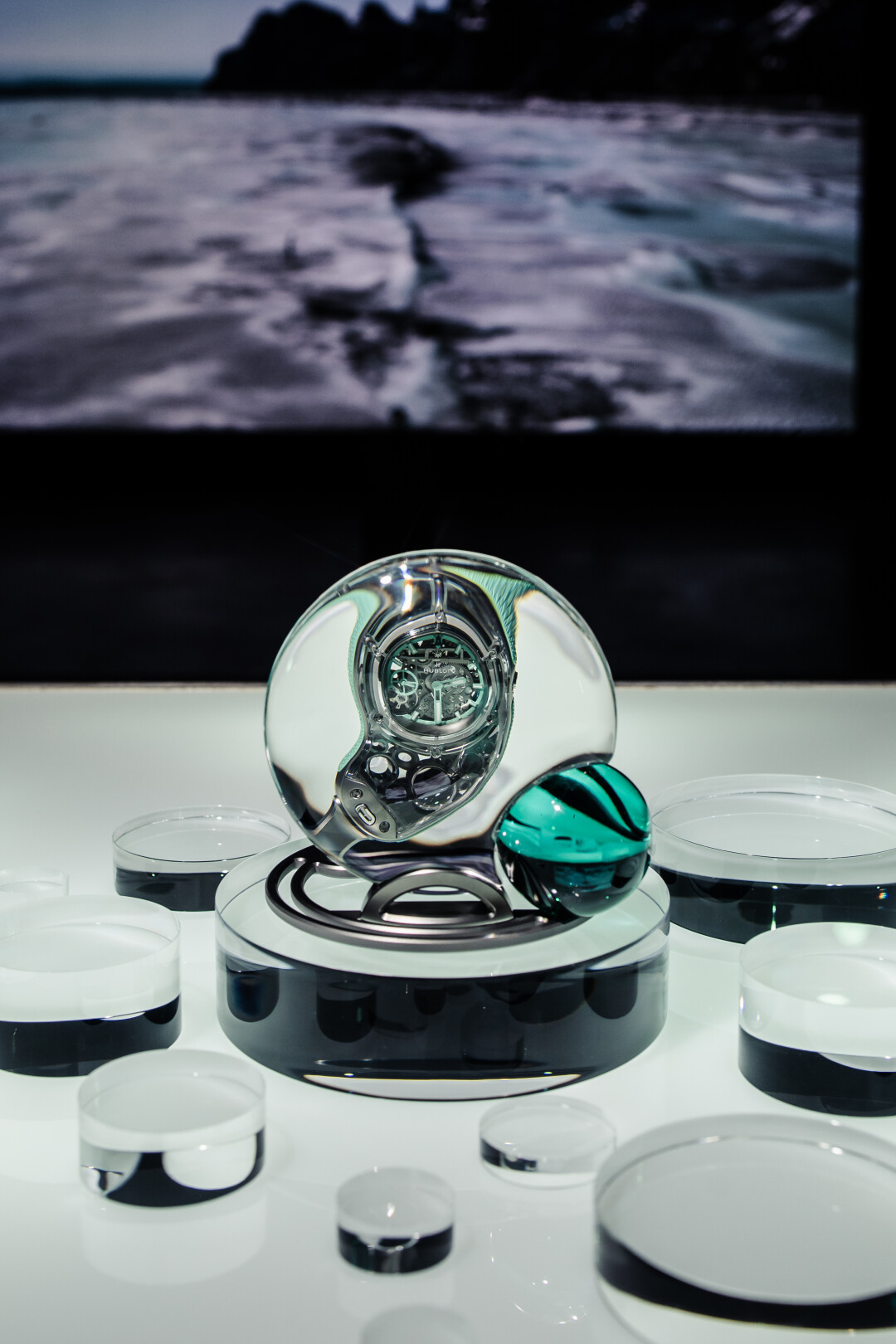Часовые титаны Hublot объединились с современным художником Дэниэлом Аршамом (автором тех самых полуразрушенных плюшевых мишек и пострадавших от коррозии автомобилей в рекламной кампании Dior SS’20) и придумали революционные ARSHAM DROPLET. Излюбленная тема художника — триада прошлого, настоящего и будущего — отразилась в переосмыслении классических карманных часов. Традиционный аксессуар, существующий еще с XVII века, превратился в футуристический артефакт с ажурным корпусом из титана с каплевидными кристаллами из сапфирового стекла. На боковых выступах, изготовленных из каучука в уникальном оттенке Arsham Green, можно разглядеть фирменную монограмму Аршама — сцепленные «А».