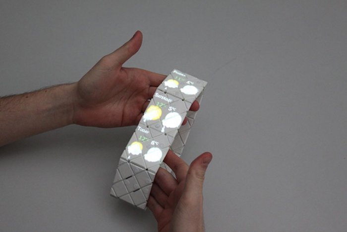 Устав от классической прямоугольной формы смартфона, бельгийские разработчики создали телефон, который может принимать форму любого устройства. По принципу детской мозаики 3D Rubik Magic Puzzle, устройство может разворачиваться в планшет, собираться в фитнес-трекер, принимать форму книги (и, внимание, страницы которой можно перелистывать). Напомним, предыдущий телефон-конструктор PaperPhone провалил все тестирования и так и не был запущен в серийное производство. Что ждет головоломку Paddle покажут тесты, но факт того, что через 3-5 лет случится скачок в развитии гибкой электроники, специалисты подтверждают.